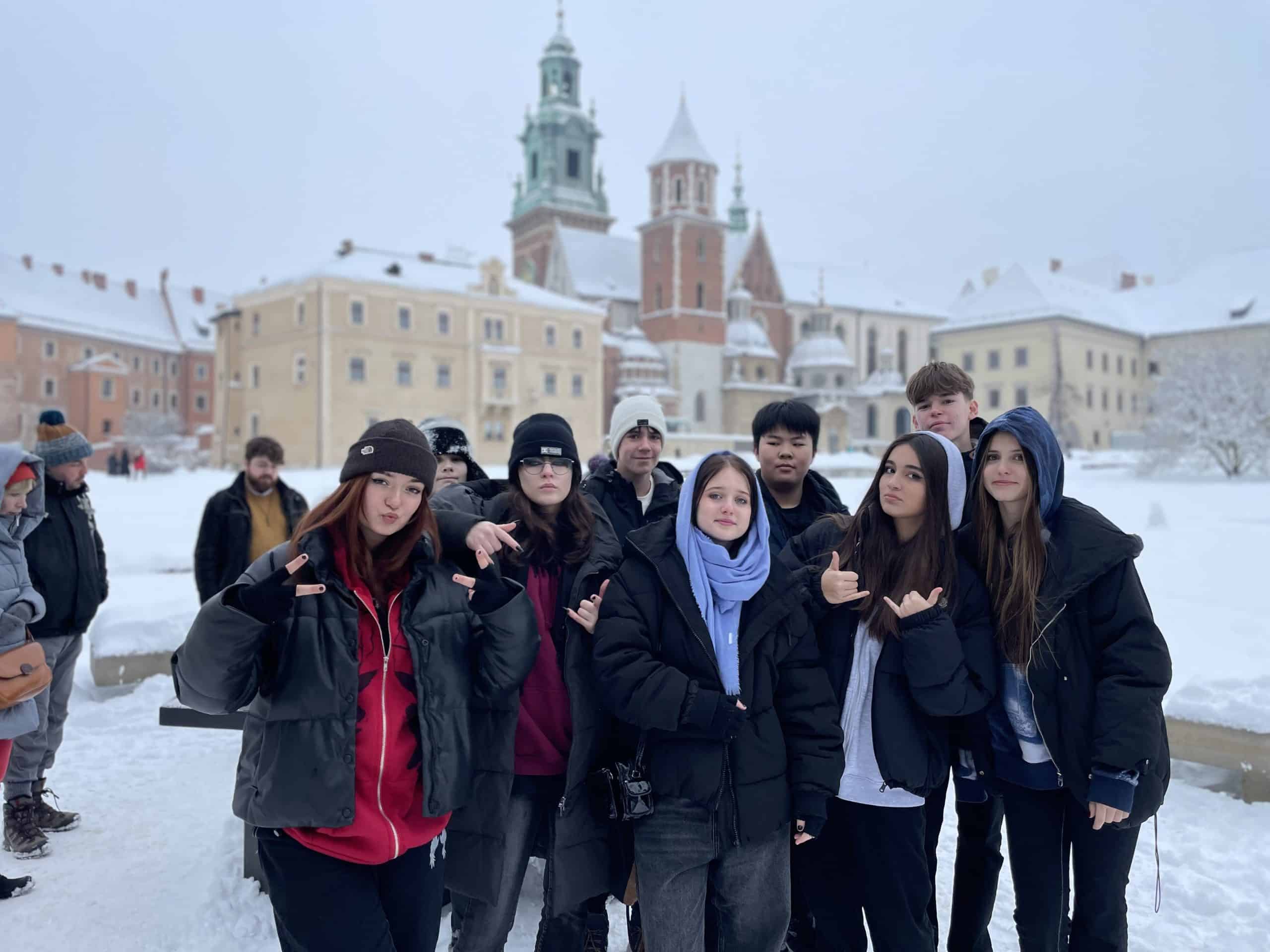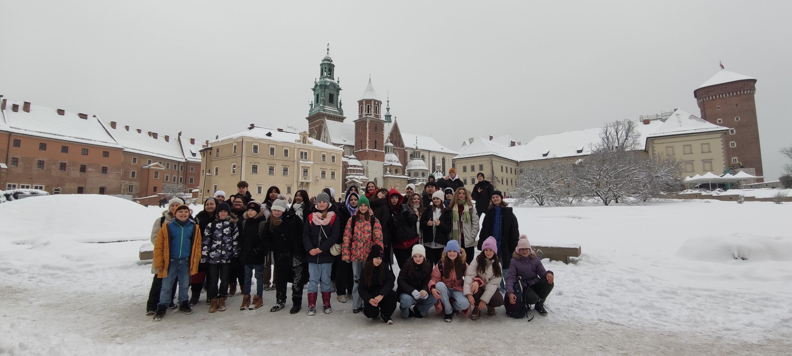 Za čarovným objavovaním krás Krakowa sa dňa 15. decembra vybrali žiaci VI.SB, VIII.EA a IX.NA. Spoločne sme si prezreli interiér Katedrálnej baziliky sv. Stanislava a sv. Václava, kde je pochovaná väčšina poľských kráľov a známych osobností, vyšplhali sa do veže, kde sa nachádza až 11 tonový zvon Žigmund, ktorý vraj splní každé prianie ak sa ľavou rukou dotknete jeho srdca. Tak sme si niečo zapriali a uvidíme, či sa to splní J.Dozvedeli sme sa veľa zaujímavostí z histórie hradu Wawel. Vianočnou atmosférou na nás dýchol Rynek Glowny- najväčšie stredoveké európske námestie, kde sme mohli obdivovať krásu a šikovnosť rúk poľských remeselníkov, poľské „šopky“- betlehemy a poprechádzať sa cez nádherné gotické Sukiennice- trhovisko, ktoré bolo kedysi hlavným centrom obchodu, hlavne drahých exotických látok a súkna, podľa, ktorého dostali svoje meno. Výlet sme si užili a svojím spevom nám cestu domov spríjemňovali speváčky z ôsmej a deviatej triedy.