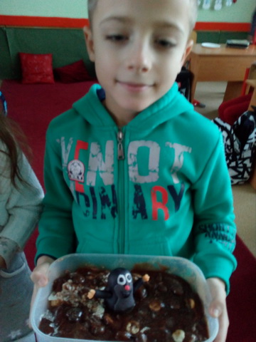 Zdá sa Vám, že je to nezmysel? No žiaci z II.LN nemajú takýto názor, pretože na hodine výtvarnej výchovy si naozaj jedlú pôdu pripravili. Keďže sa na prvouke učíme o zložení pôdy a teraz sa nám skrýva pod vrstvou snehu, tak sme si ju pripravili takto: strúhaná čokoláda, sušené brusnice v bielej alebo tmavej čokoláde, cereálne lupienky, gumené dážďovky, čokoládový alebo vanilkový puding a marcipánový krtko. Nám to chutilo a vyzeralo to asi takto: