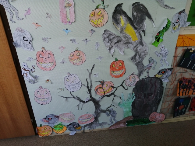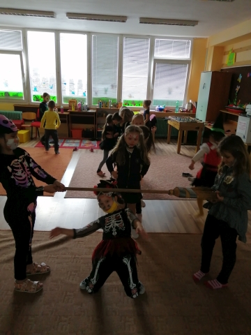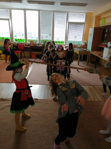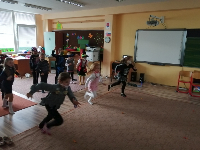 Trieda Ježkov bola koncom mesiaca sprevádzaná ďalším dobrodružstvom. Tentokrát sme sa spoločne preniesli do magickej a veru strašidelnej krajiny. Zažili sme veľa zábavy a opäť sa naučili i niečo nové – pri tvorení Halloween výzdoby alebo pri veselých pohybových hrách v rámci našej Halloween akcie. Nechýbalo nám ani špeciálne občerstvenie v podobe ľudských očí či zubov upíra. Nuž, pozrite sa ako sme sa mali a akými maskami či farbami sa vystrojili na našu Halloween akciu.