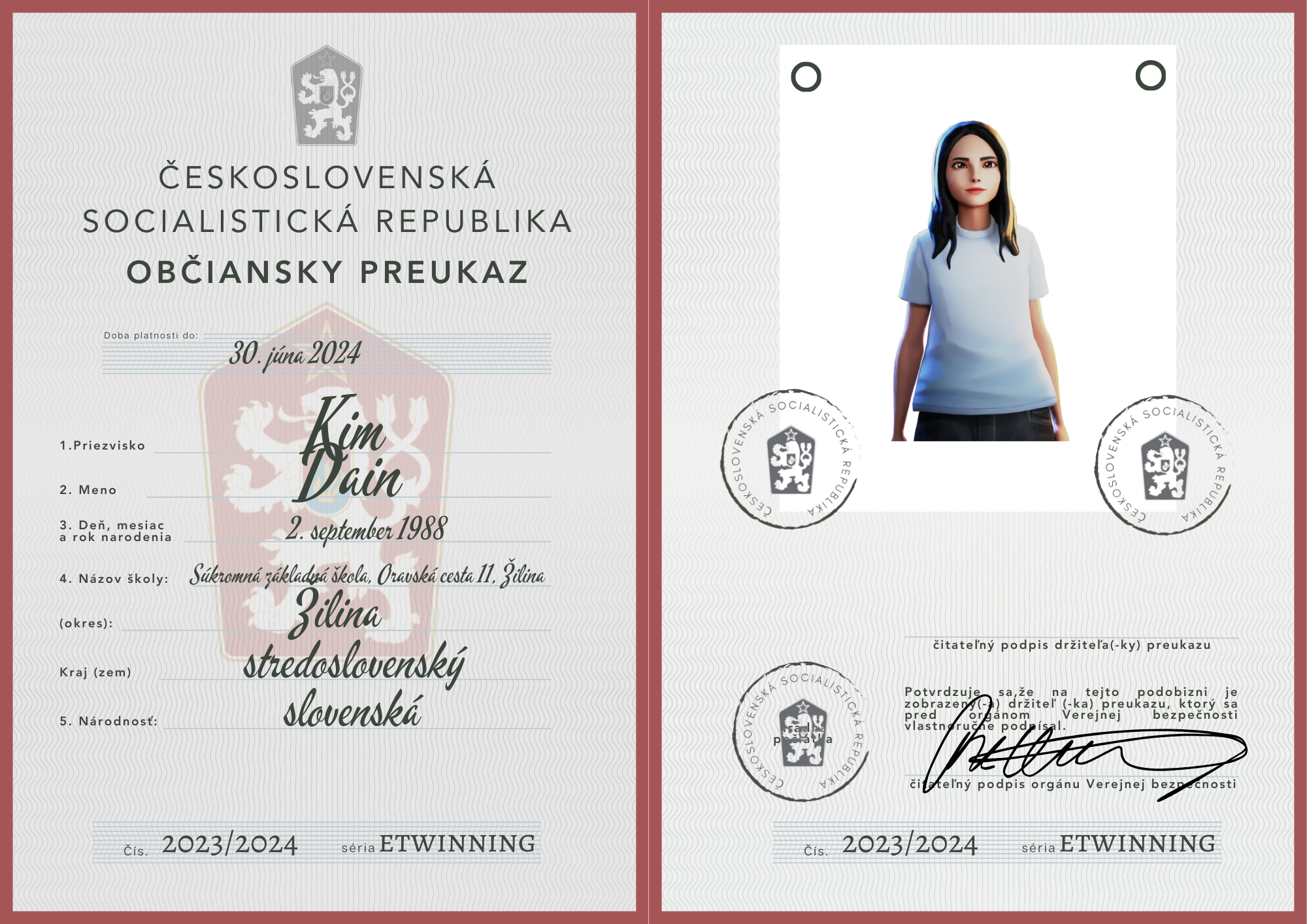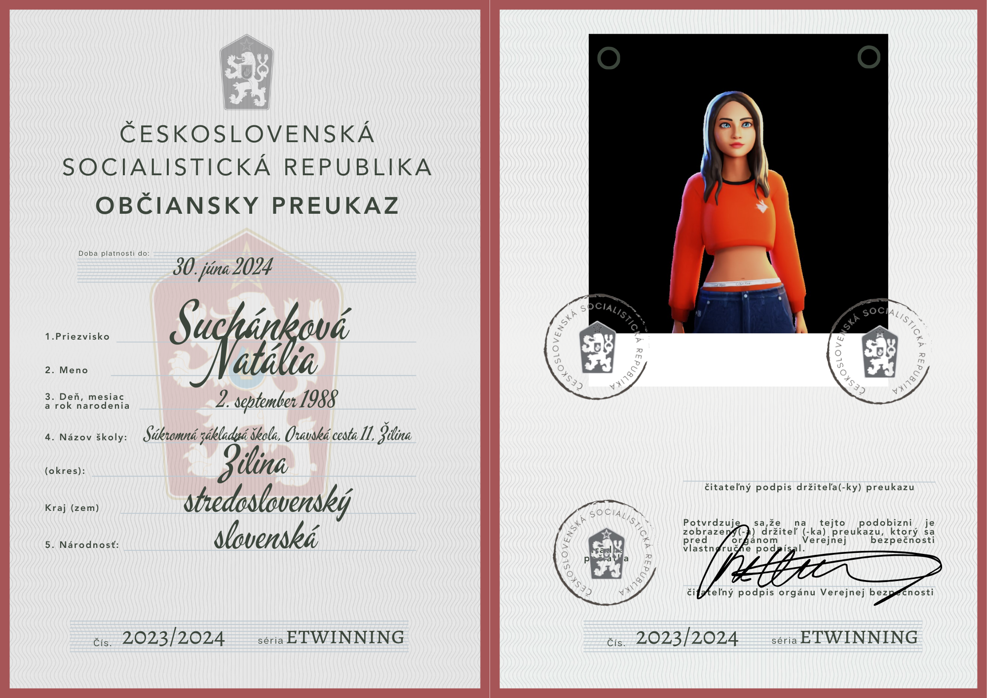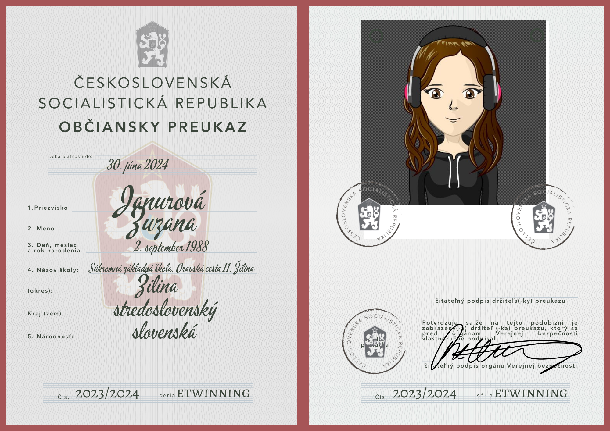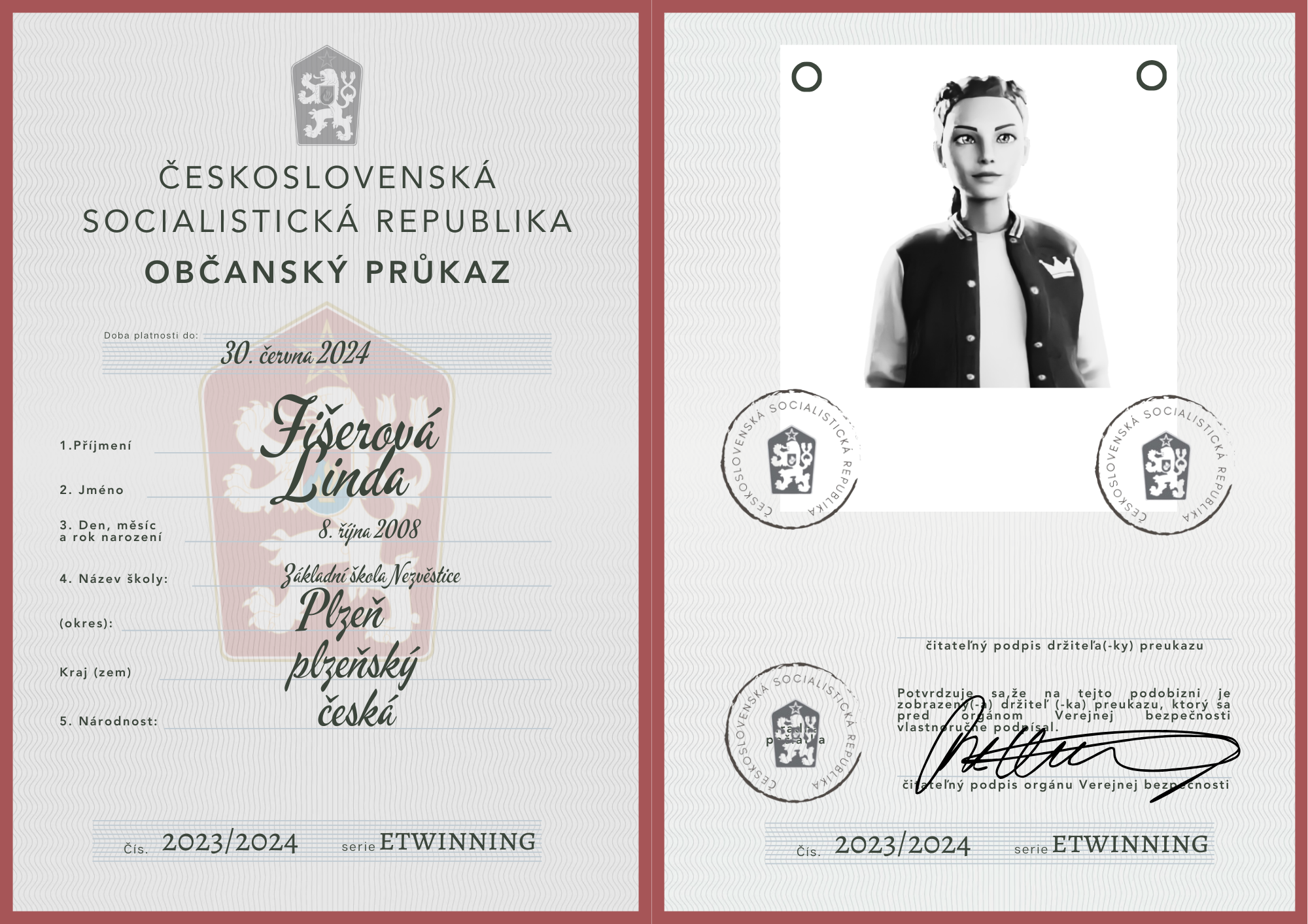 eTwinning projekt s našimi českými partnermi sa nám krásne rozbehol. Okrem toho, že sme už zrealizovali 2 online stretnutia, stihli sme okrem avatarov, grafiky k nášmu projektu (logá), hlasovania, interaktívnej manifestácie vyrobiť aj typické československé občianske preukazy.
