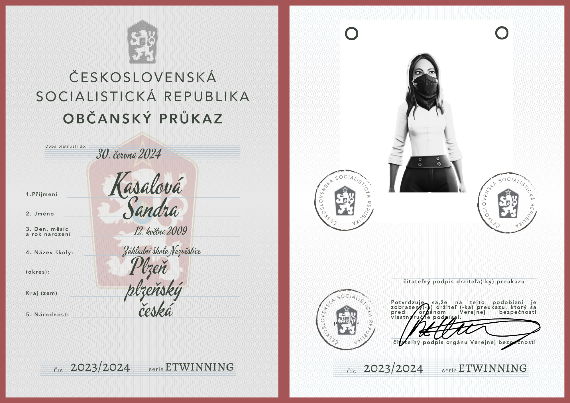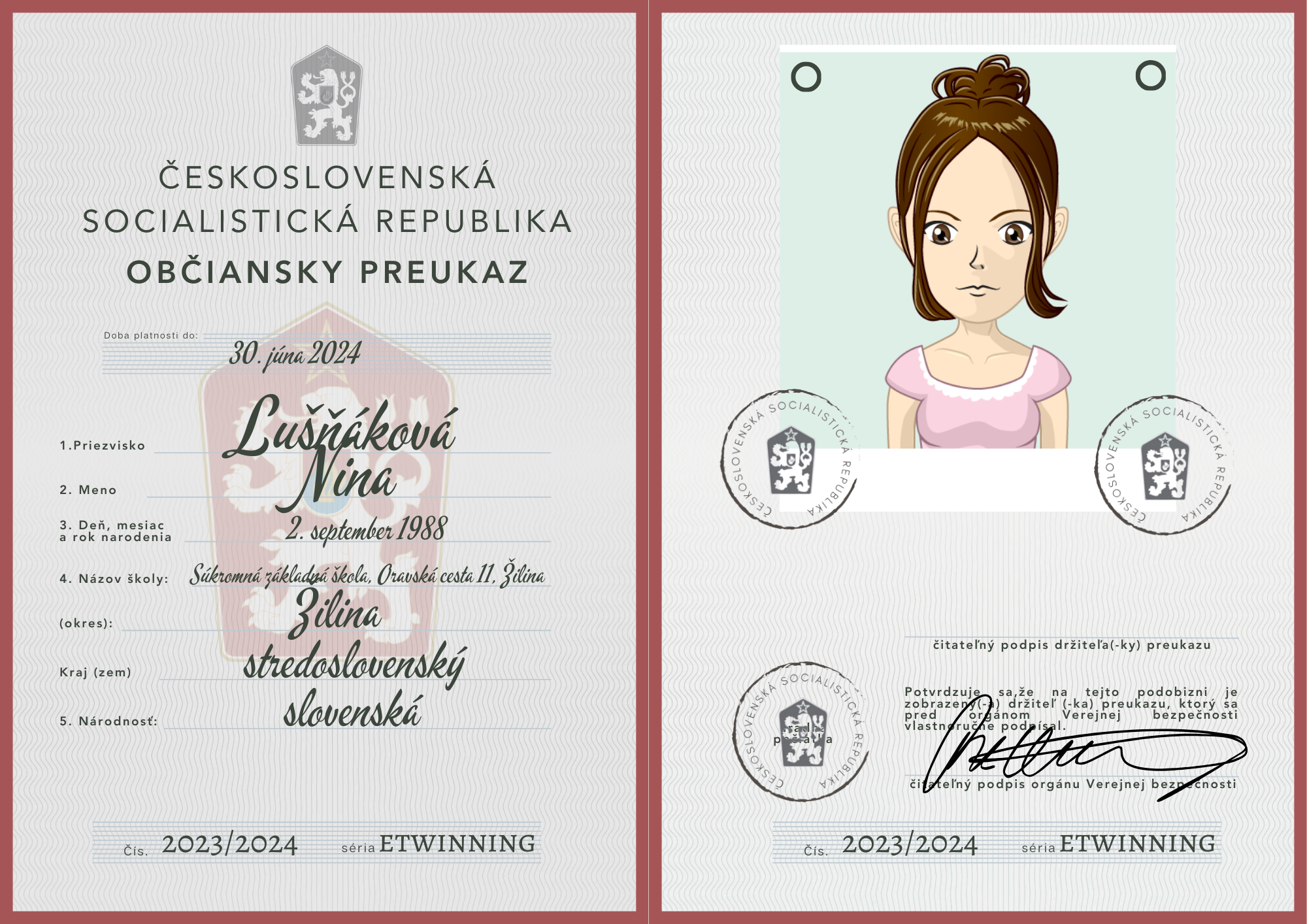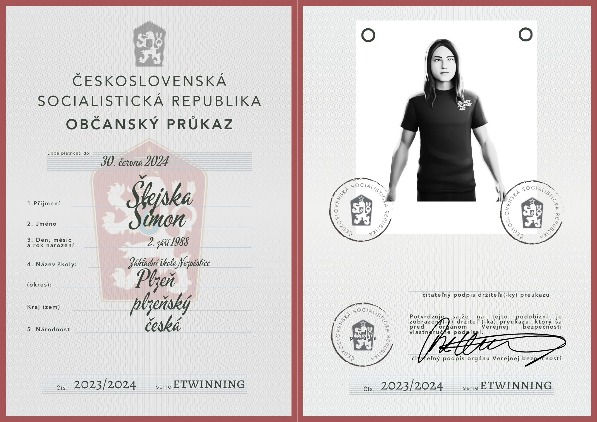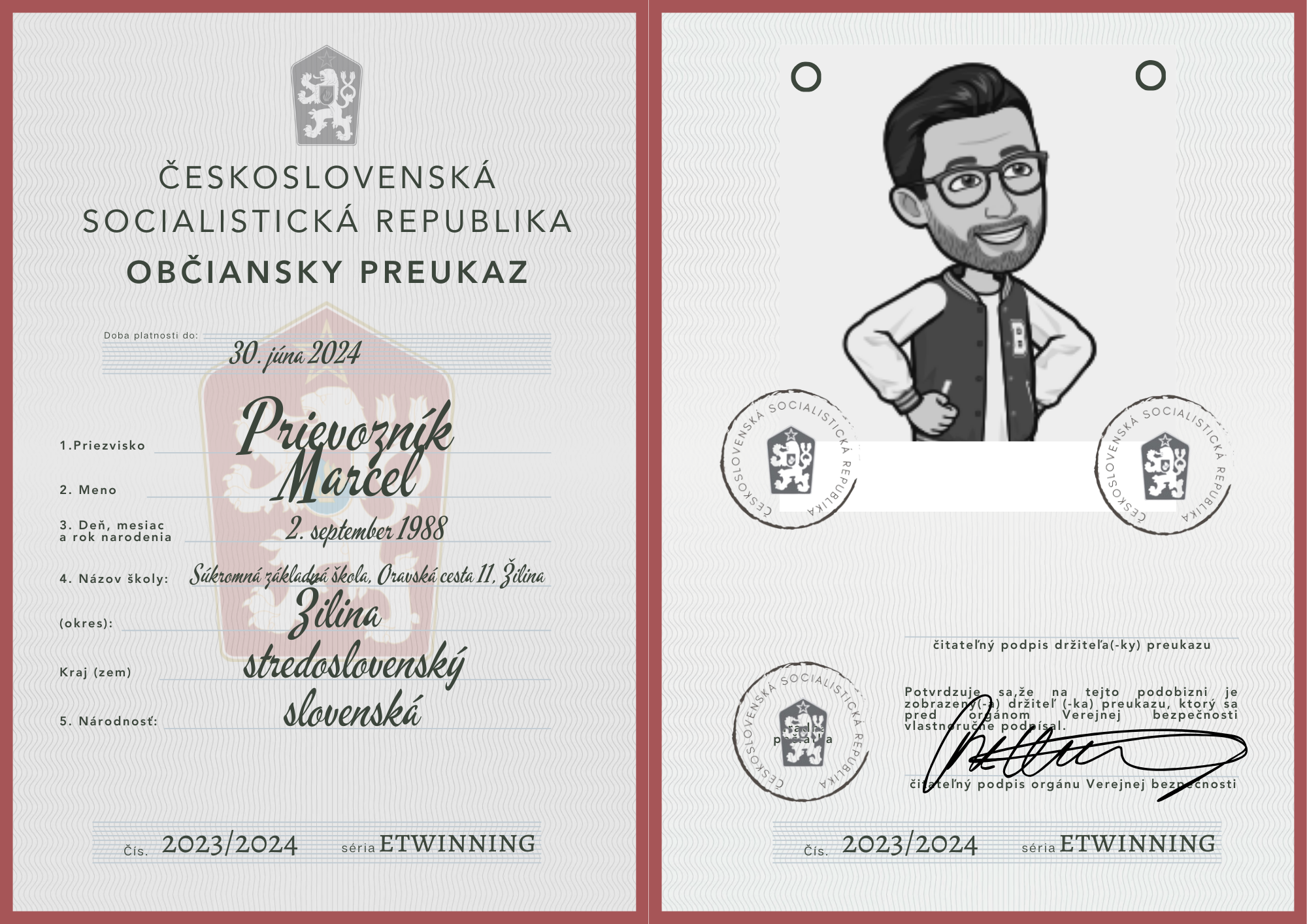 eTwinning projekt s našimi českými partnermi sa nám krásne rozbehol. Okrem toho, že sme už zrealizovali 2 online stretnutia, stihli sme okrem avatarov, grafiky k nášmu projektu (logá), hlasovania, interaktívnej manifestácie vyrobiť aj typické československé občianske preukazy.