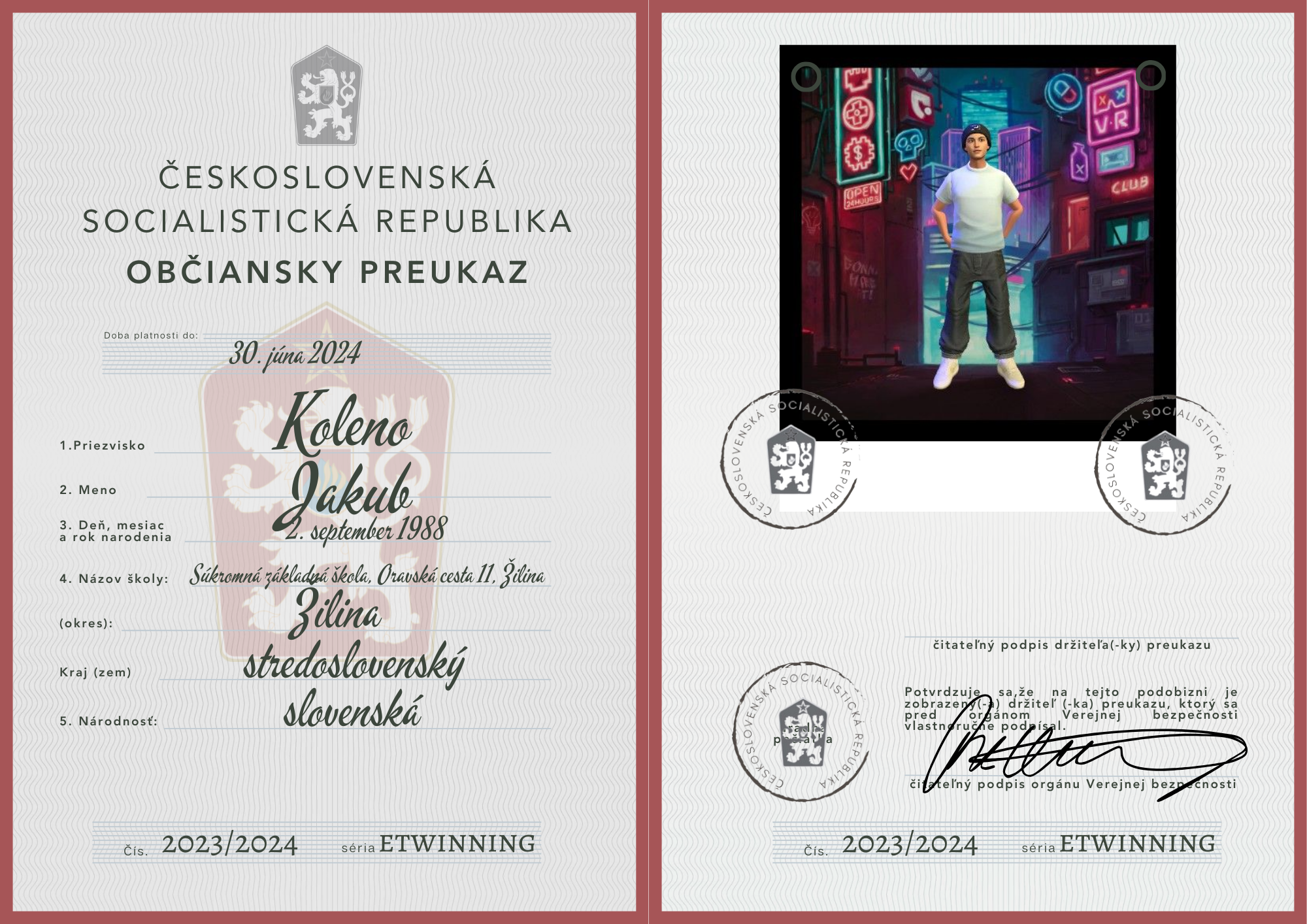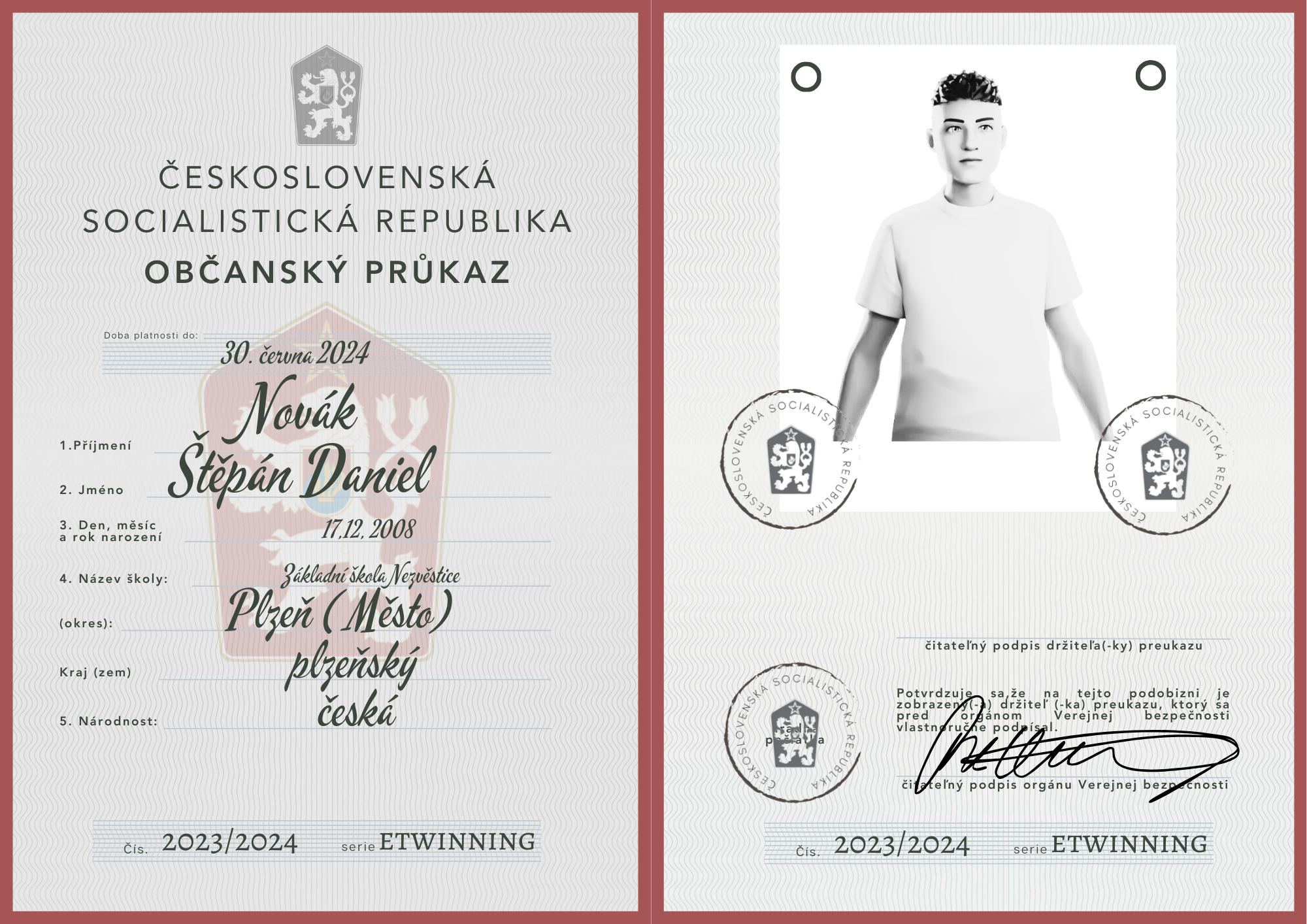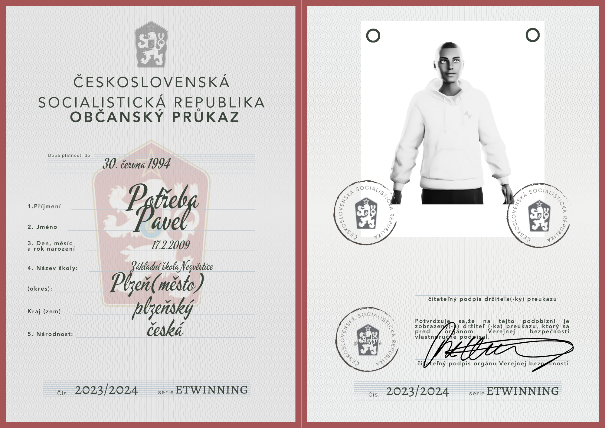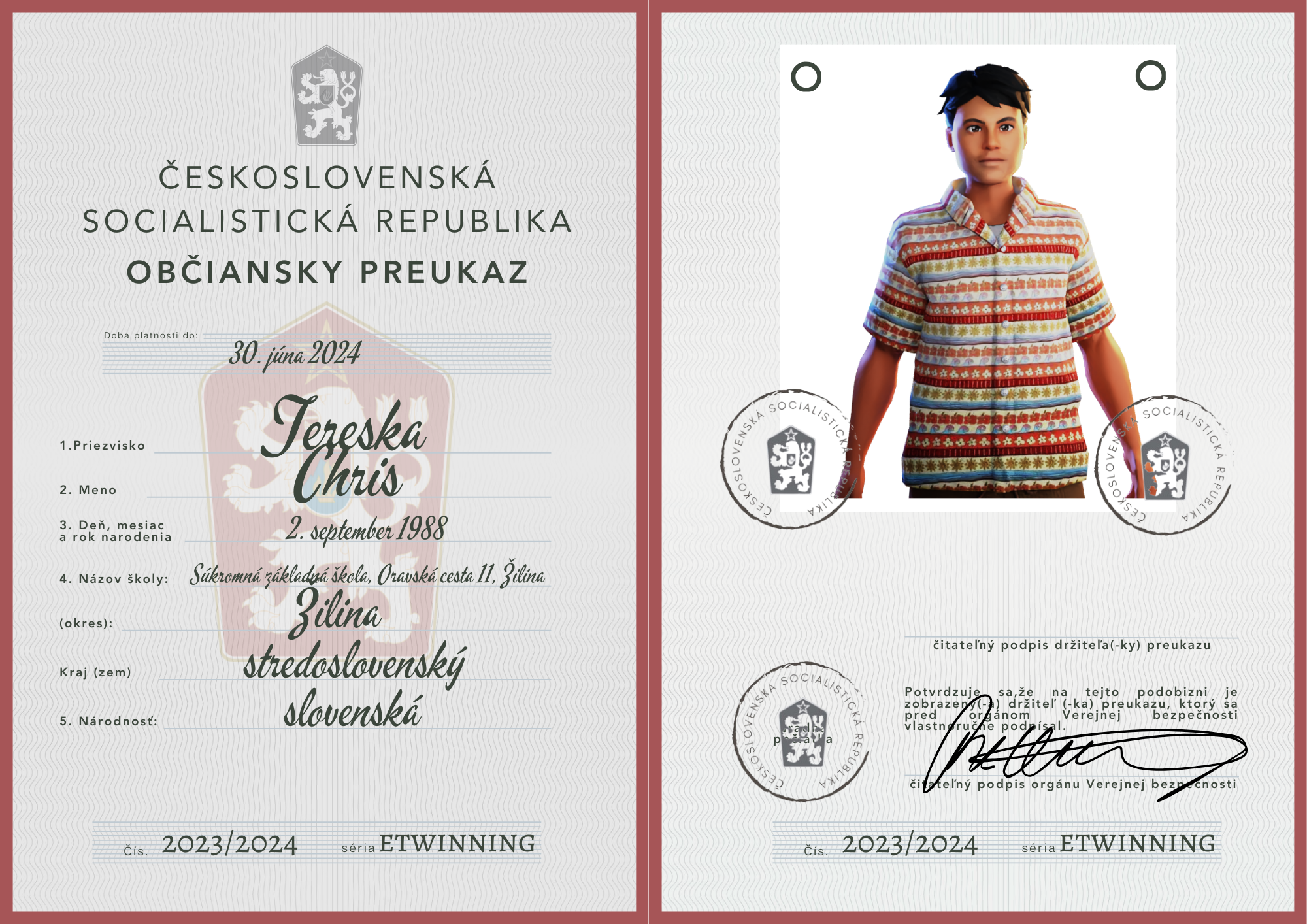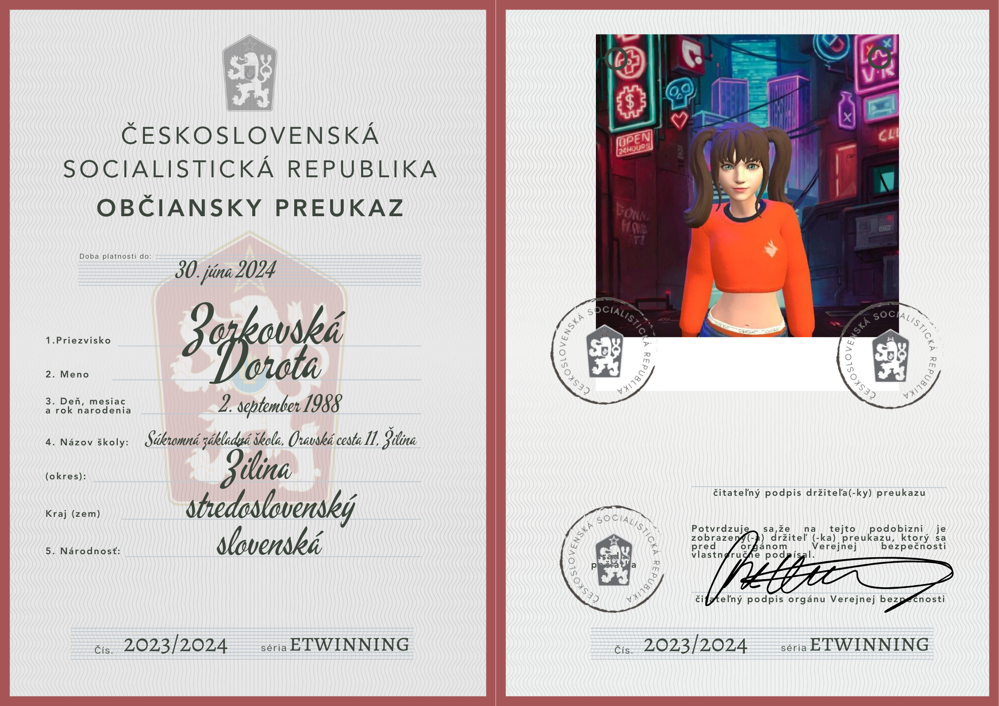 eTwinning projekt s našimi českými partnermi sa nám krásne rozbehol. Okrem toho, že sme už zrealizovali 2 online stretnutia, stihli sme okrem avatarov, grafiky k nášmu projektu (logá), hlasovania, interaktívnej manifestácie vyrobiť aj typické československé občianske preukazy.