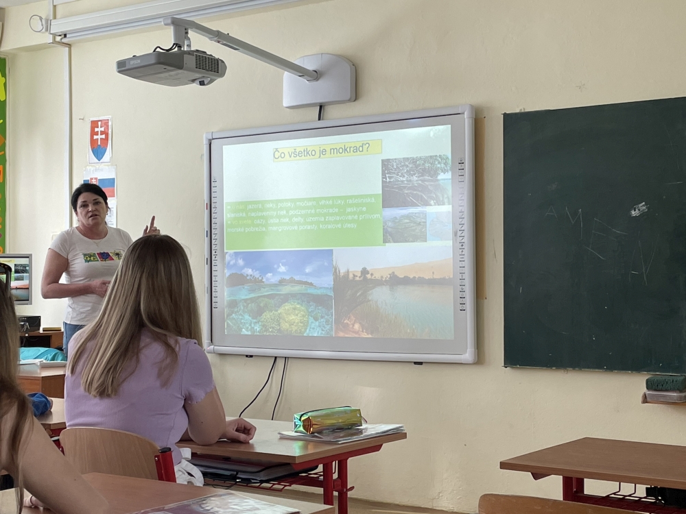 Hodinu biológie sme sa spoločne s ôsmakmi rozhodli venovať našim najviac ohrozeným a vzácnym biotopom – Mokradiam, ktoré majú mimochodom aj svoj medzinárodný deň 🙂 . S pani A. Badurovou zo Správy NP Malá Fatra, Školy ochrany prírody vo Varíne, sme diskutovali o tom, čo je to mokraď, čo ich najviac ohrozuje, aké lokality sú v rámci Slovenska pod ochranou v tzv. “Ramsarskom dohovore”, ako náš život priamo od mokradí závisí, ale tiež, ako môžeme tieto skvosty prírody zachovať aj pre ďalšie generácie. Svoje nadobudnuté vedomosti sme si preverili v krátkom kvíze a kartičkovej hre s mapou. Tešíme na ďalšie stretnutie!