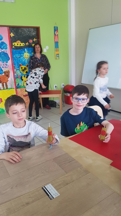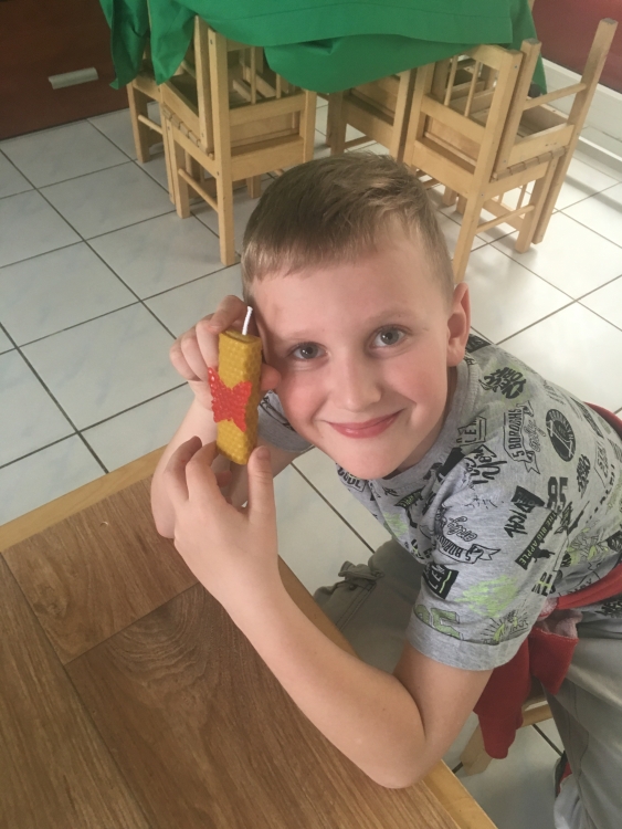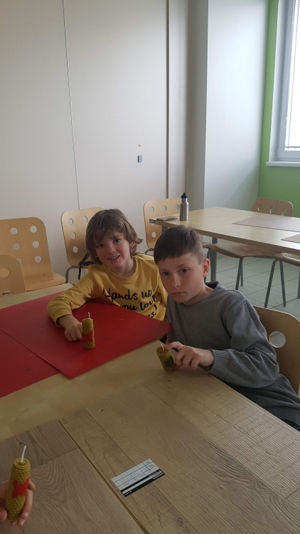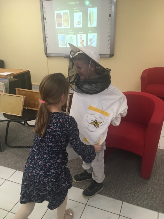 Posledný deň pred veľkonočnými prázdninami sa deti zo včielkovej a lienkovej triedy zúčastnili záujímavej besedy o včielkách, ktorá bola v Krajskej knižnici v Žiline. Pani knihovníčka Ladka nám porozprávala rôzne zaujímavosti zo života včielok a naučila nás vyrábať krásne sviečky z včelieho vosku.