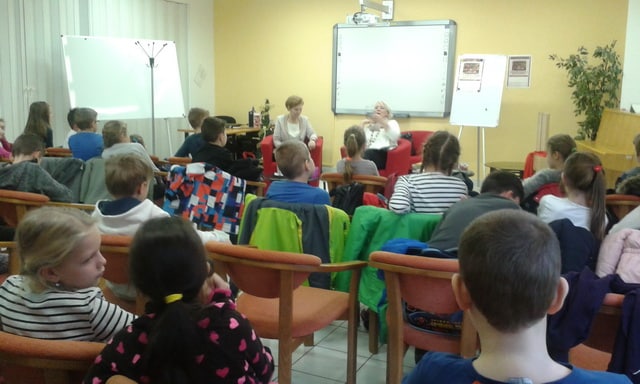 Žiaci IV.MO a IV.MR prežili príjemnú hodinu v Krajskej knižnici v Žiline so spisovateľkou T. Révajovou. Dozvedeli sa, ako píše knihy, ako vznikli jej hrdinovia, čo má rada, na čo myslí, keď práve nepíše…ale hlavne, získali podnet na čítanie jej kníh.