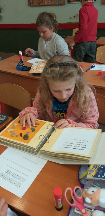 Počas aktivít a hier deti pracovali s pomôckami, ako napr.: hovoriaca váha, hovoriace hodinky, knihy, hrali sa s hračkami, tak ako nevidiace detičky a vyskúšali si napísať svoje meno Braillovým písmom.