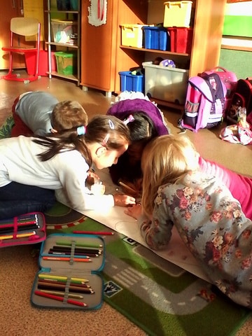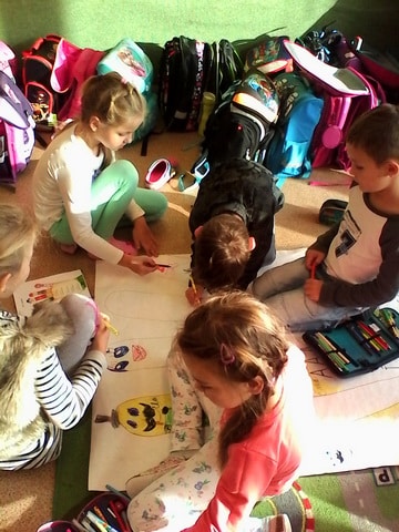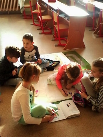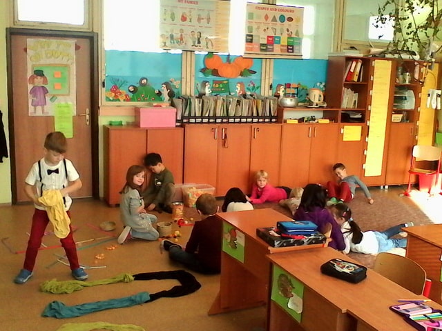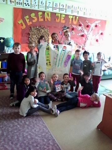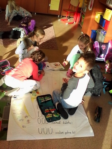 24. októbrový deň sa v triede I. JŽ niesol v usmiatej slnečnej atmosfére. Nielenže nám slniečko ohrievalo naše tváre, ale aj našu aktivitu pod názvom “Písmenková rodina – hra s prstami” v rámci projektu “Čítame spolu” , ktorý organizovalo Ministerstvo školstva, vedy, výskumu a športu SR. Inšpirovali sme sa knihou Hovorníček od Daniela Heviera a Zlatá reťaz od Eleny Slobodovej. Pani učiteľka nám prečítala rečňovanku o prstovej rodine a vtipnú prekáračku na prstoch. Našou úlohou bolo prstovú rodinku, písmená A, E, I, O, U, stvárniť tromi rôznymi spôsobmi. Najprv sme na veľkom papieri dokresľovali na dlaň jednotlivých členov písmenkovej rodiny, neskôr sme ich napodobňovali vlastným telom a do tretice sme ich modelovali z rôznych prírodnín a vecí dennej potreby (stužky, farebné šále, gaštany, obaly na vajíčka). Už teraz sa tešíme na ďalšie podobné projekty a pevne veríme, že slniečko nám opäť rozžiari našu triedu a prispeje k dobrej nálade.