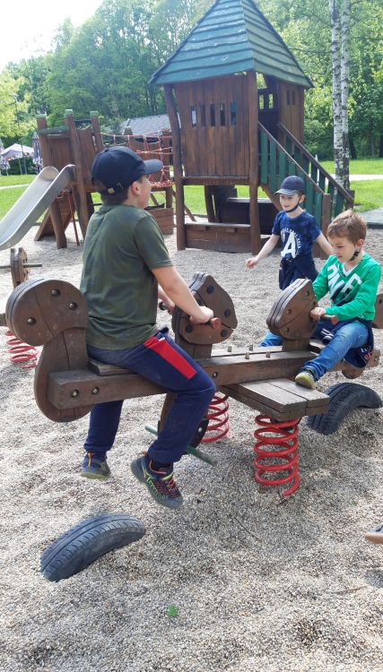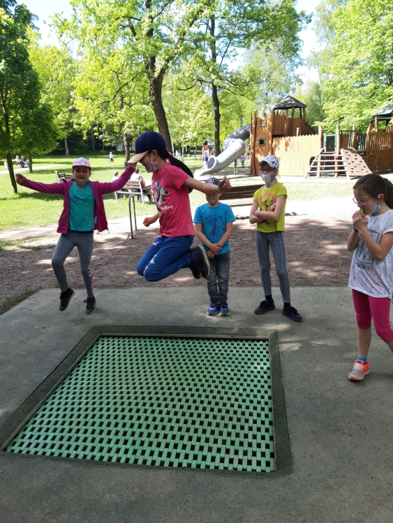 Lesopark je plný zábavy – výskoky na trampolínach boli pre nás Delfínov najlepším zážitkom. Užili sme si aj lanovku, tobogány a hojdačky.