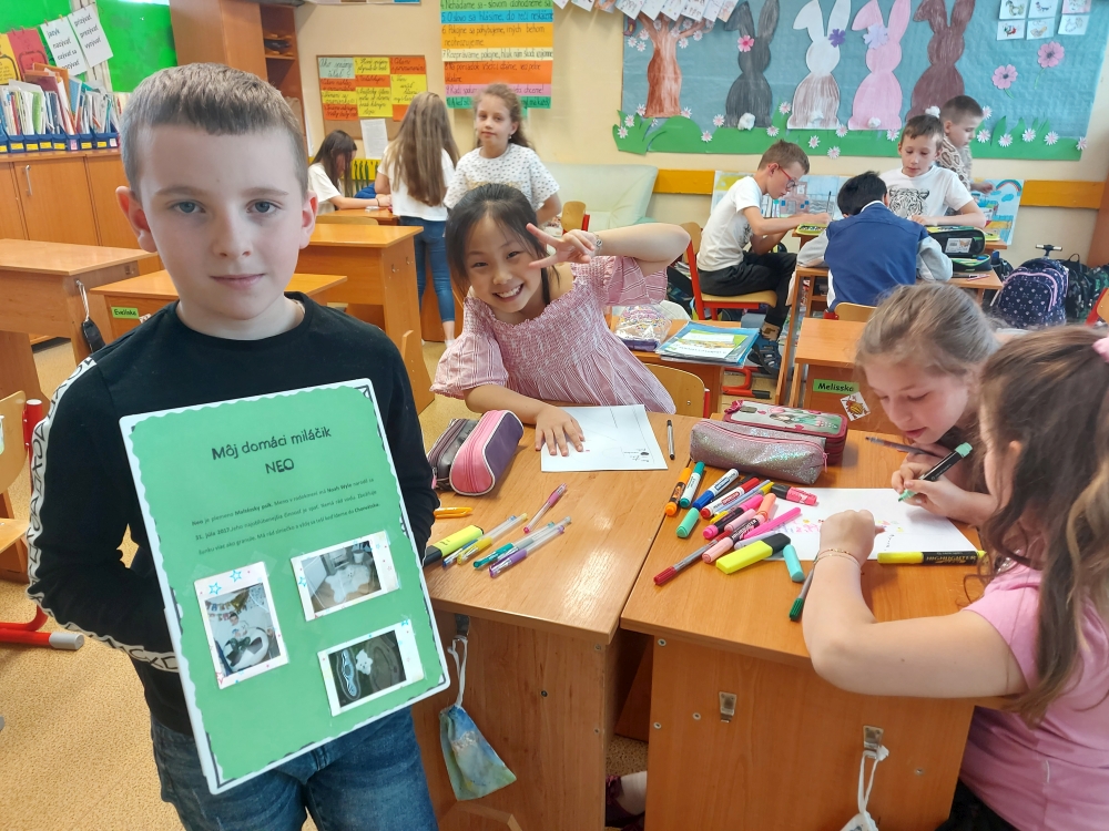 Deň zvierat v triede III.CHR bol osviežením pred blížiacim sa záverom šk. roka a s tým súvisiacimi povinnosťami detí. Laurinkin škrečok a Soničkine činčily boli našimi živými zvieracími spoločníkmi a okrem nich hŕba plyšových zvierat. Deň sme prežili rozhovormi, čítaním kníh, super prezentáciou života rýb v akváriu Mirka Hlavičku, .maľovaním a tvorbou makiet zvierat. Stelka, Dominika a Lukáš odprezentovali vypracované projekty o svojich zvieracích priateľoch. Obohatení skúsenosťami a veselými príhodami o našich zvieracích miláčikoch sme sa príjemne naštartovali do posledného májového týždňa.