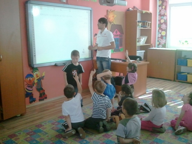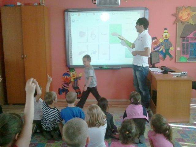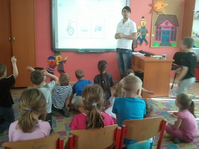 V dnešný krásny slnečný deň nás navštívili malí predškoláci z MŠ Stavbárska, aby sa naučili znovu niečo nové z angličtiny. Keďže cyklistická sezóna je v plnom prúde, ako hlavnú tému sme zvolili dopravu a dopravné prostriedky. Pod vedením Ing. Prievozníka, skúseného angličtinára, sa deti prostredníctvom interaktívnej tabule a zábavných cvičení na nej naučili slovnú zásobu: dopravné prostriedky a cestovanie na bicykli.
