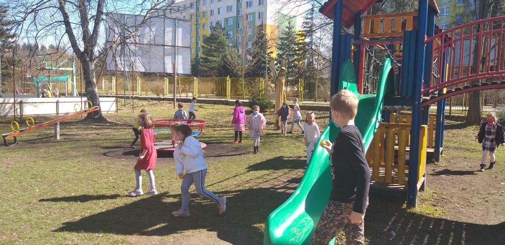 Krásny, slnečný deň a k tomu prekvapenie, zvedavosť, nedočkavosť, hľadanie, radosť, smiech, zábava, maškrtenie.