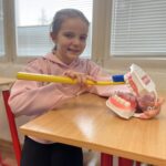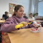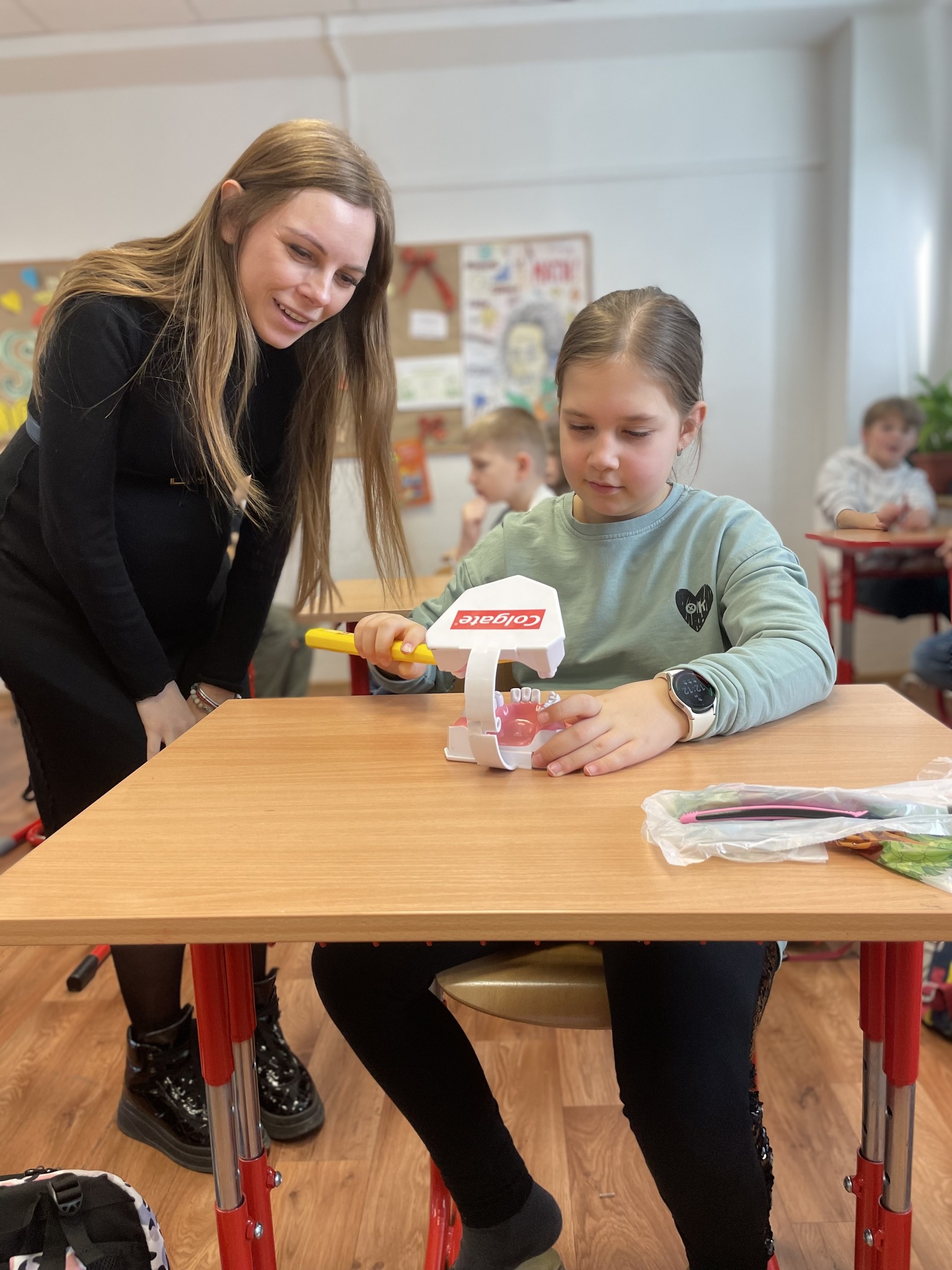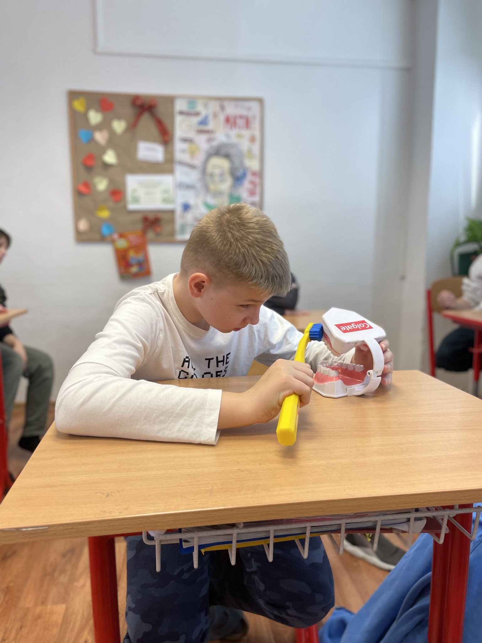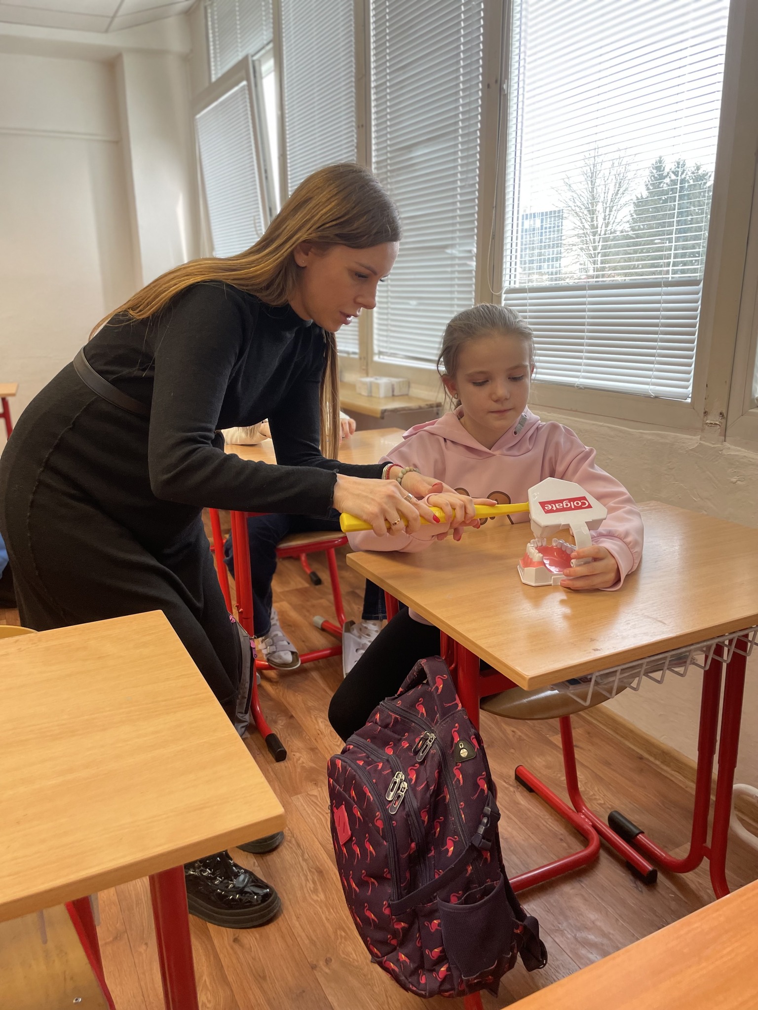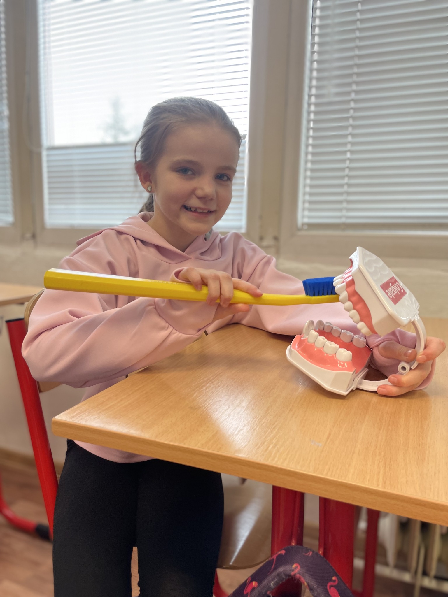 At today’s talk on “Children’s teeth and dental hygiene”, V.FA pupils learned about how to choose the right toothbrush and when to change it. Through various practical exercises, they learned the basic techniques of proper brushing and explained when and why to use a single-bristle toothbrush, dental floss and interdental brushes. The pupils took away a lot of useful information, a new toothbrush and a smile on their face.