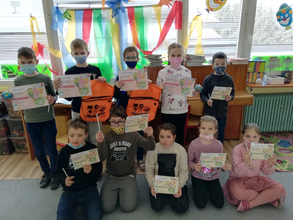 The competition was held on Tuesday 30. November 2021. This competition is truly unique. Competitors from the 2nd, 3. and 4th year students test their knowledge in different areas: science, natural science, Slovak language and literature, mathematics, English language, computer science, transport, music and art education. Third and fourth graders have 40 minutes to answer 30 questions. Sophomores answer 24 questions in 40 minutes. That’s why we’re delighted that 35 children took part in the competition this year. All the successful ones were awarded the title “All-Science”. Among the children who answered all the questions correctly in the competition this year was also our second grader Šimon Palko from class 2.LN, who made it to the Hall of Fame. Congratulations to everyone!