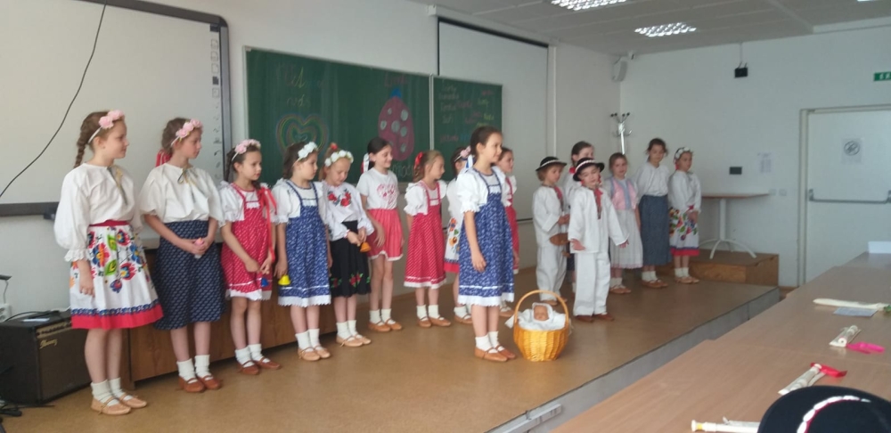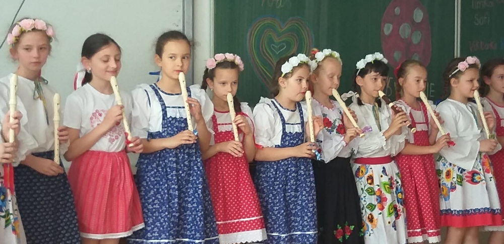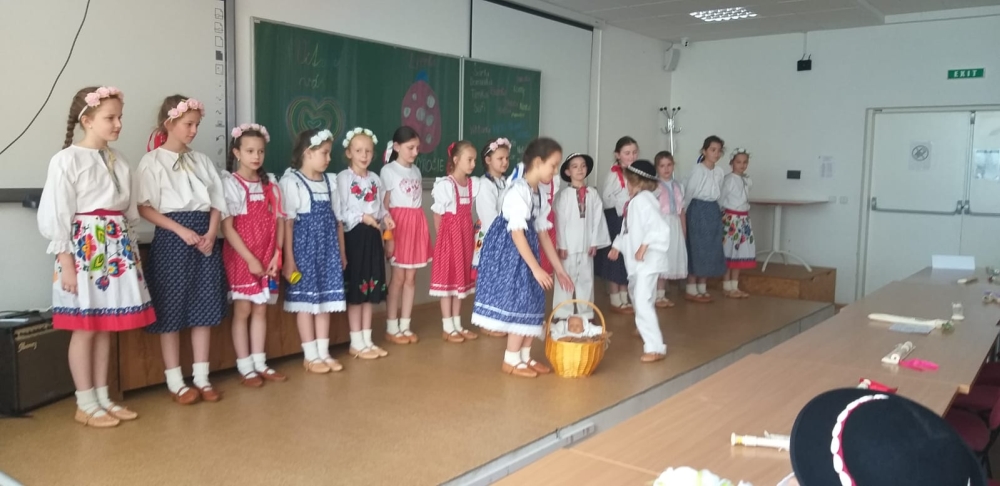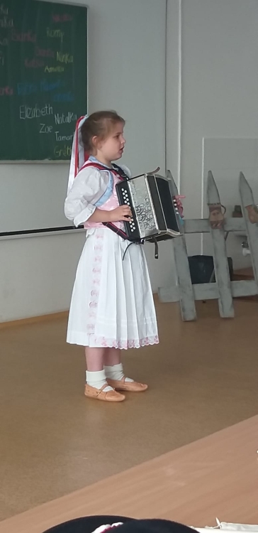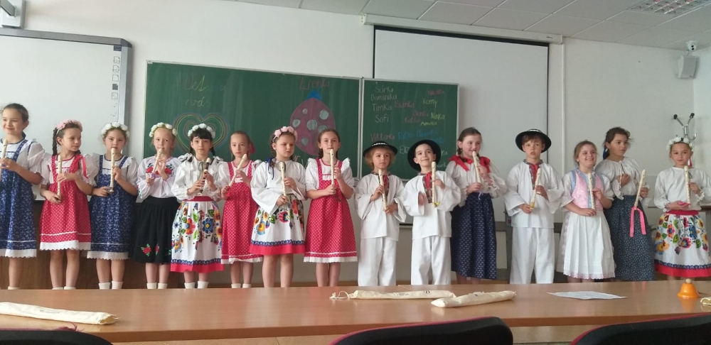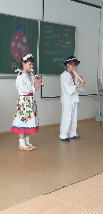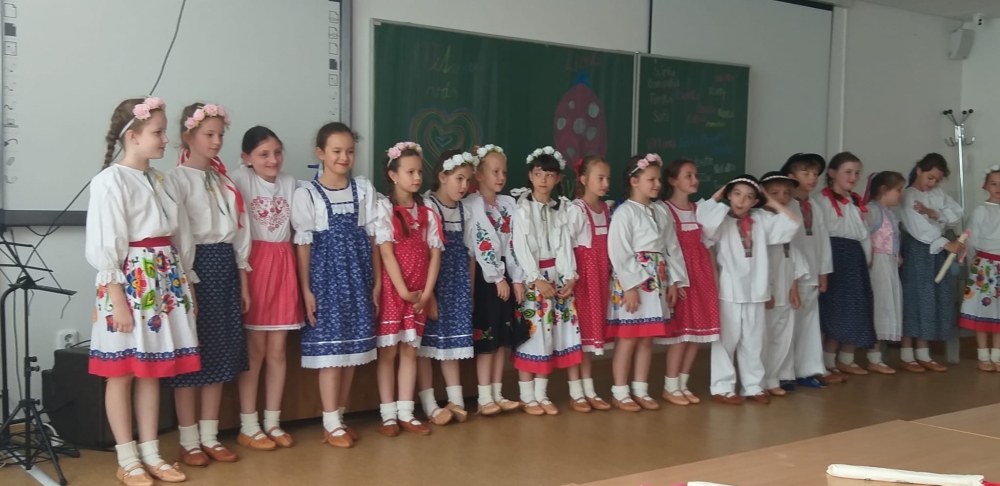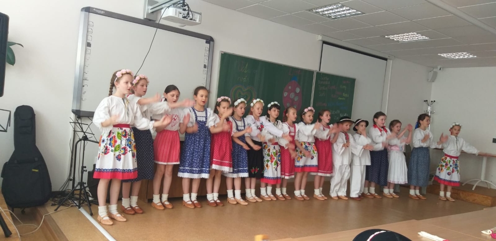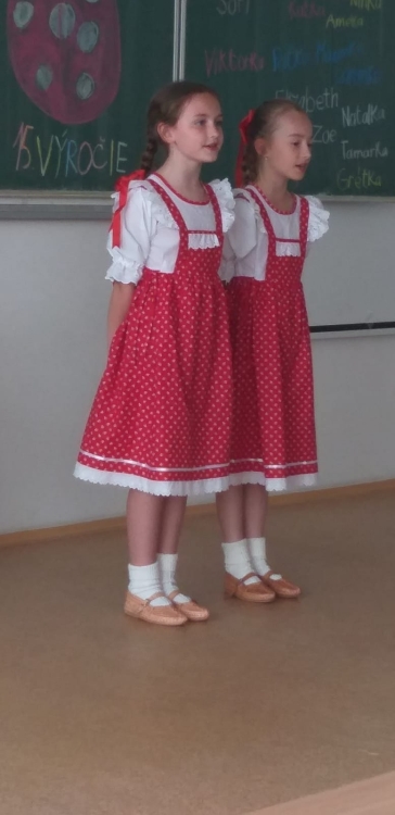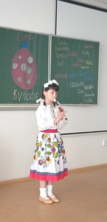 On Friday 20.5. 2022, all members of the Lienka ensemble were looking forward to it. They prepared a festive programme on the occasion of 15. anniversary of the founding of this ensemble. The program was held in the red auditorium, parents, grandparents, siblings and also the principal, vice principal and Mr. It was fun and everyone enjoyed the programme. We were finally able to show everything we had practiced during this school year.
