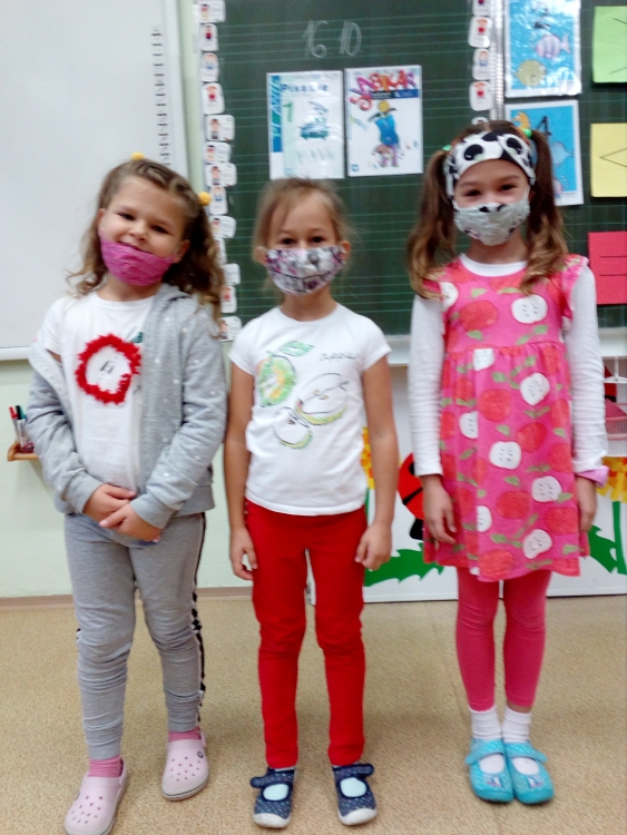 We had such a happy and healthy day on Friday 16.10.2020 in I. LN class. First the pupils made nice posters about apple trees, then they sang and played the songs “Red Apple” and “Once upon a time the apple was beautiful” and our Ninka played them on the heligonica. Some of the girls also wore apple outfits. And most of all, the pupils enjoyed making apple dumplings and then tasting them.