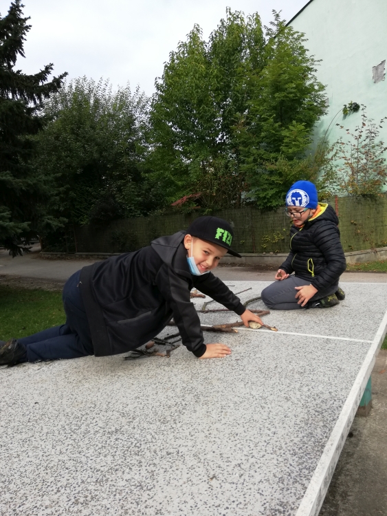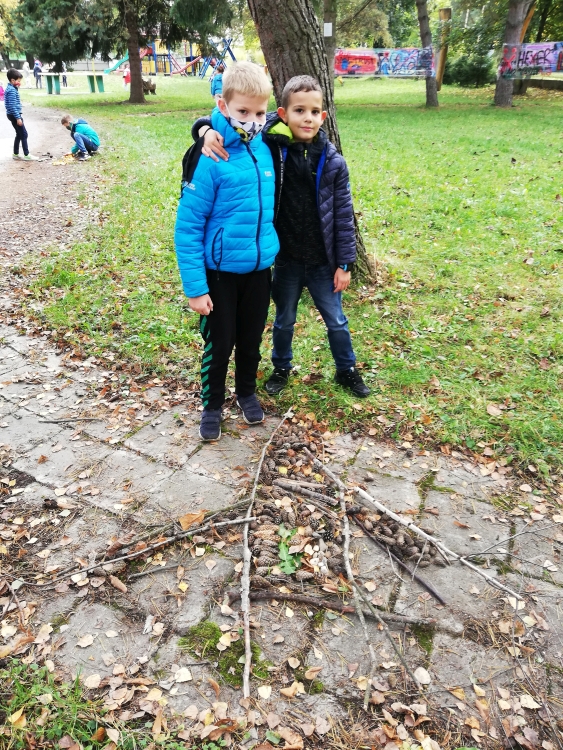 The second grade Bees took advantage of the nice autumn moments during art class for a fun creation in the fresh air.