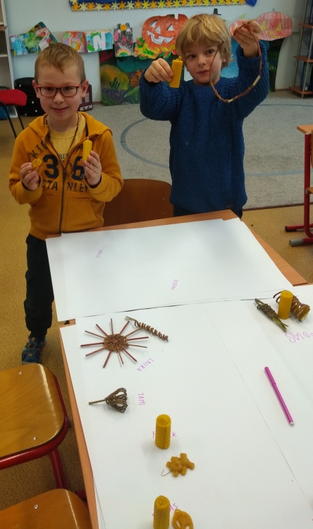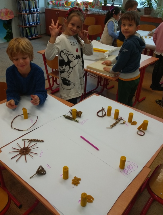 On Friday 25.11. was unusual for freshmen. We were visited by gentlemen who are engaged in crafts. They introduced us to interesting creations:RNDr. Michal Hudzík – beeswax products and Ing. Milan Beliančin – wicker products. Together with them we created beautiful candles, Christmas tree ornaments, necklaces and bracelets. The first graders enjoyed these workshops very much.