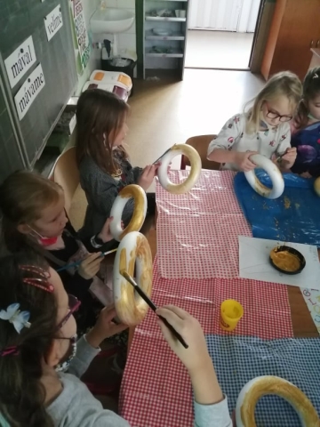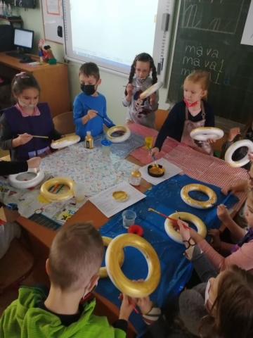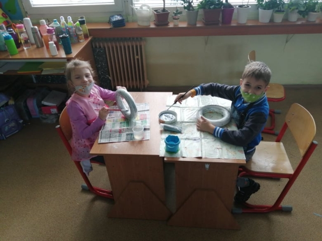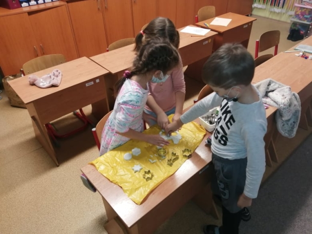 In the Ježkov department we were not bored during the December period and tried various creative activities. Since we don’t have snow around us yet – we decided to at least create it on our bulletin board, which is also decorated with our creations of jolly St. Nicholas and bunnies.