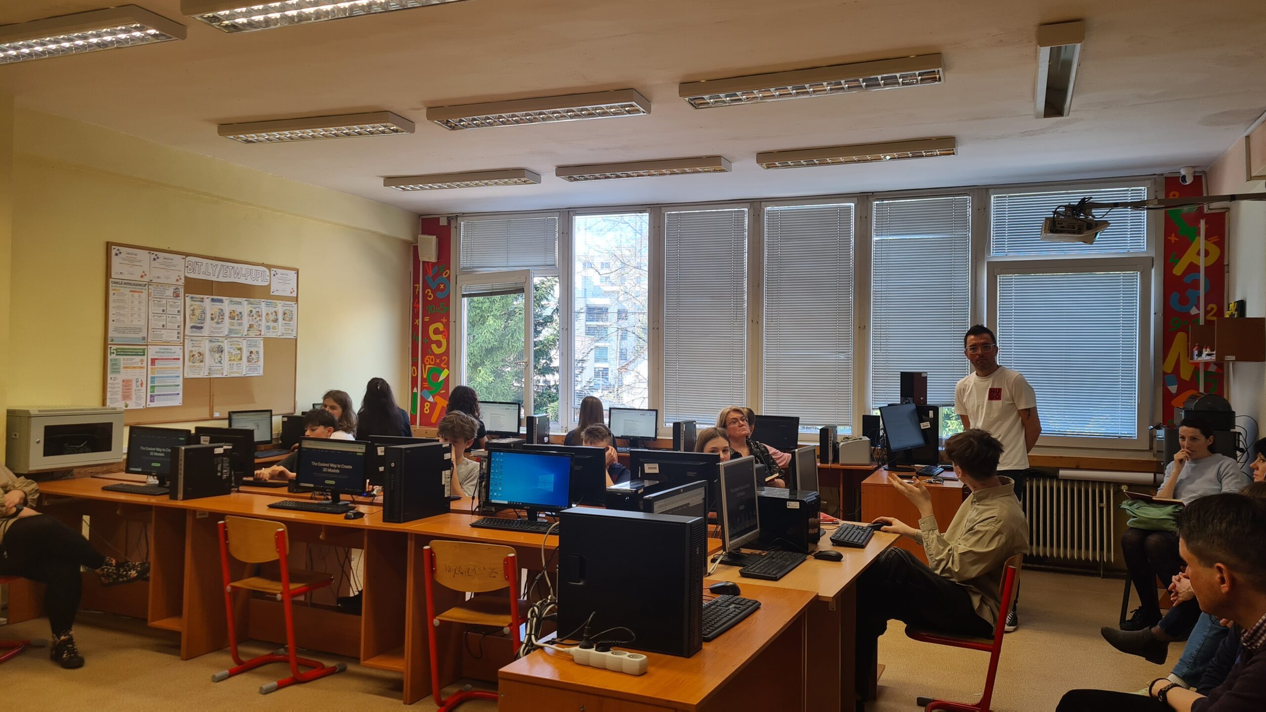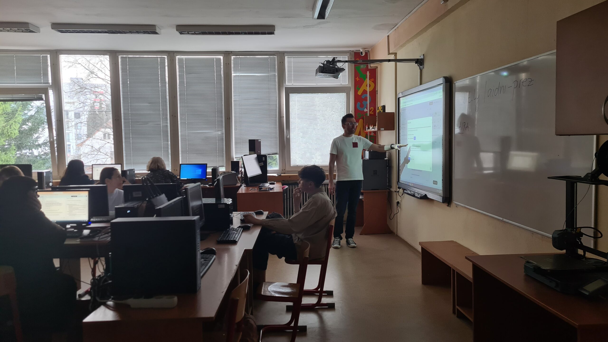 The first demonstration lesson took place in the subject of computer science and its aim was to show students that artificial intelligence does not have to be used only to generate texts. Pupils tried out how AI can help in the creation of digital applications and 3D objects.