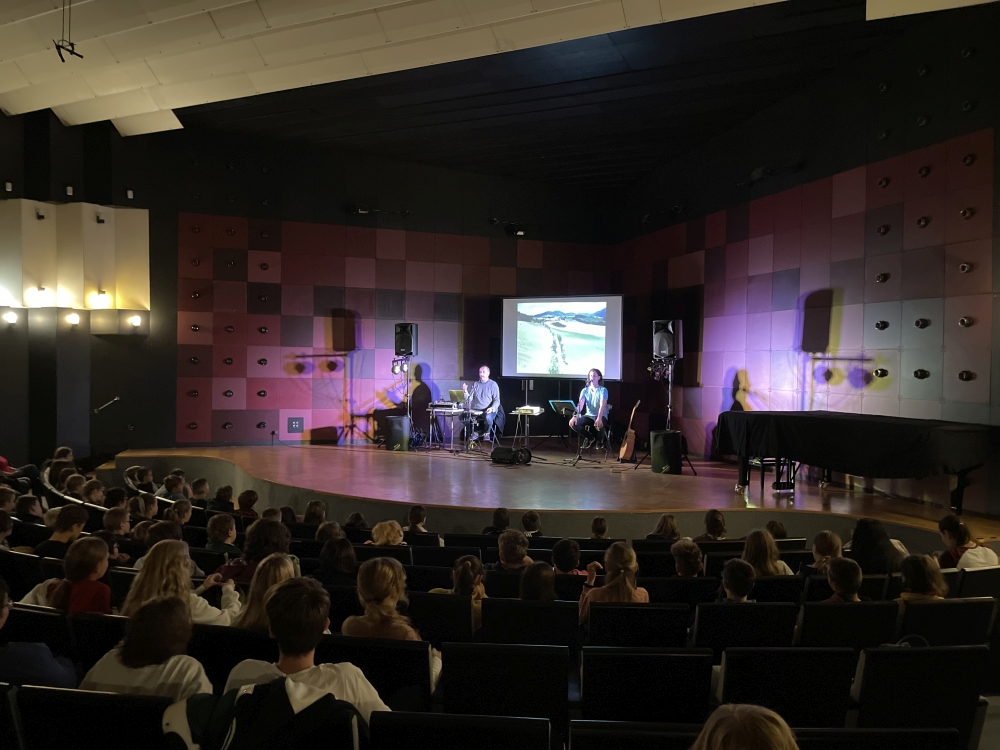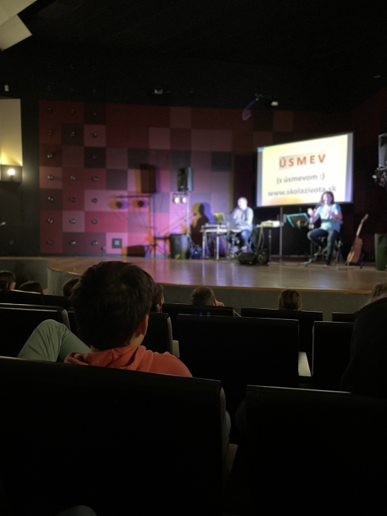 Much can be said, written and, of course, sung about the problems teenagers and the young generation have with their parents, school and society. Second grade pupils could see it with their own ears and eyes when Jaro Gažo (Arzén group) and Rado Pažej (AYA group) brought us closer to this topic so close to the pupils through singing, music and clips… and so we clapped and sang.
