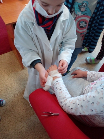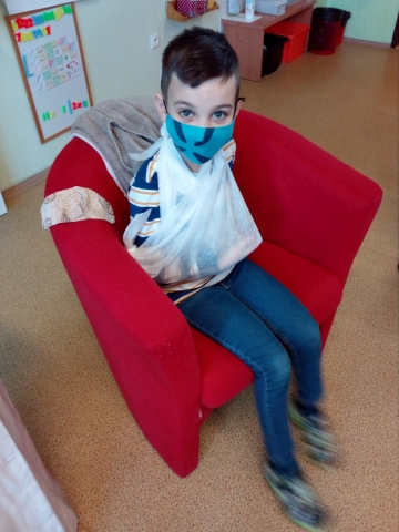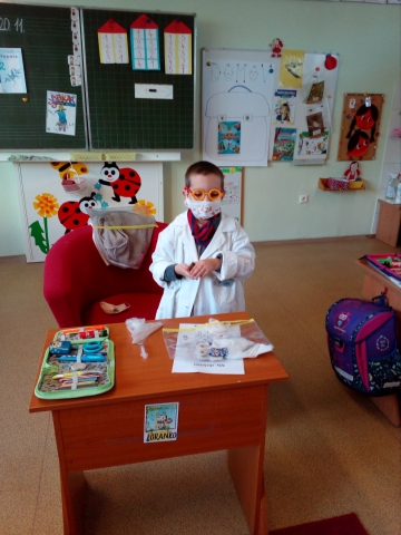 Friday 20.11. 2020 was again cheerful and informative for the 1st LN class. Pupil Loranko Grznár became a doctor for one lesson and told his classmates how to treat an injured hand, eye, what is an ECG, vaccinations, pupils looked at X-ray images and finally created a picture of a human skeleton. Of course, he did not forget the telephone numbers of the rescuers.