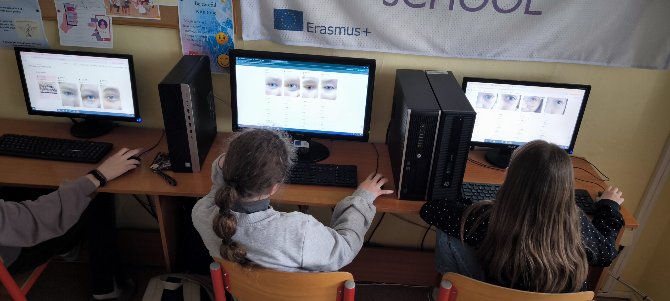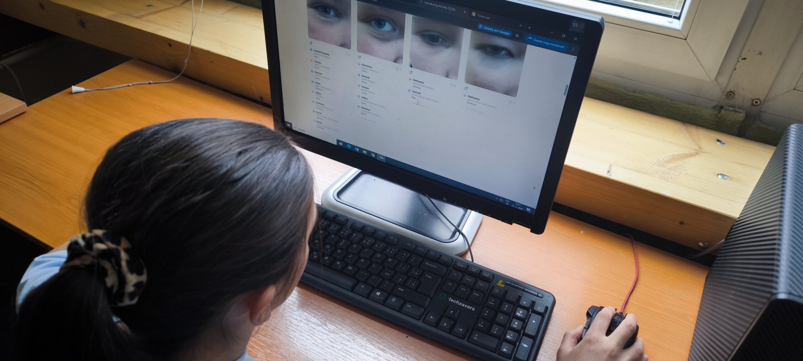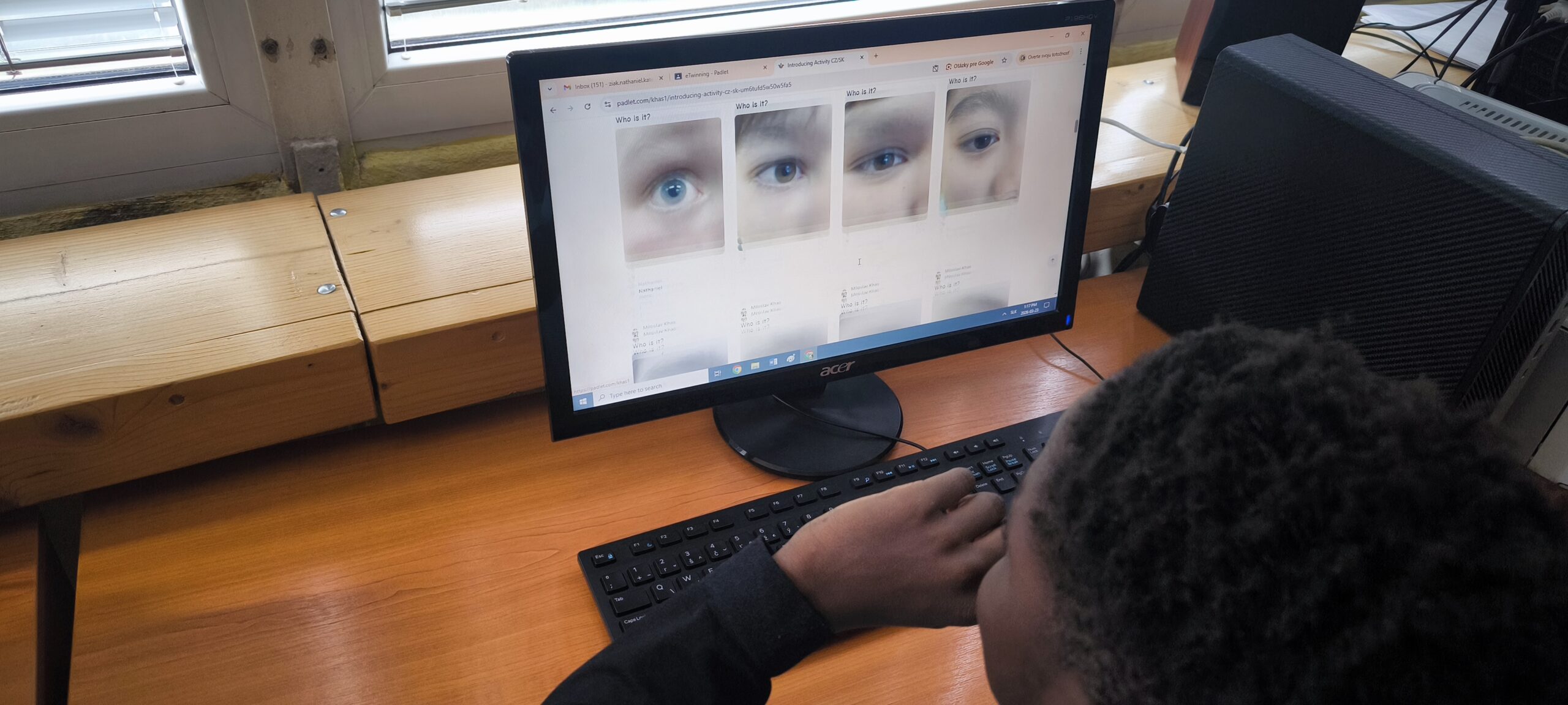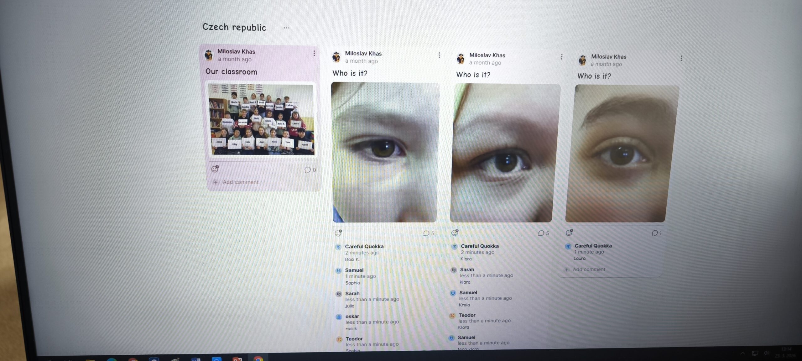 We used Padlet for the implementation, where pupils guessed who each eye belonged to through comments. Slovak pupils guessed their Czech counterparts and vice versa, which created natural interaction and curiosity.