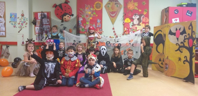 It’s finally here! 16.11. The Ladybirds couldn’t wait for the class to end, because this afternoon the long-awaited Halloween Party would finally begin!!!.They had a lot of work to do: decorate the classroom, prepare the snack tables, dress up in costumes.Oh… it was a lot, but it was worth the effort! Great mood, dancing, music, sweets, competitions, rewards, surprises..And that’s how the scarecrows enjoyed their day.