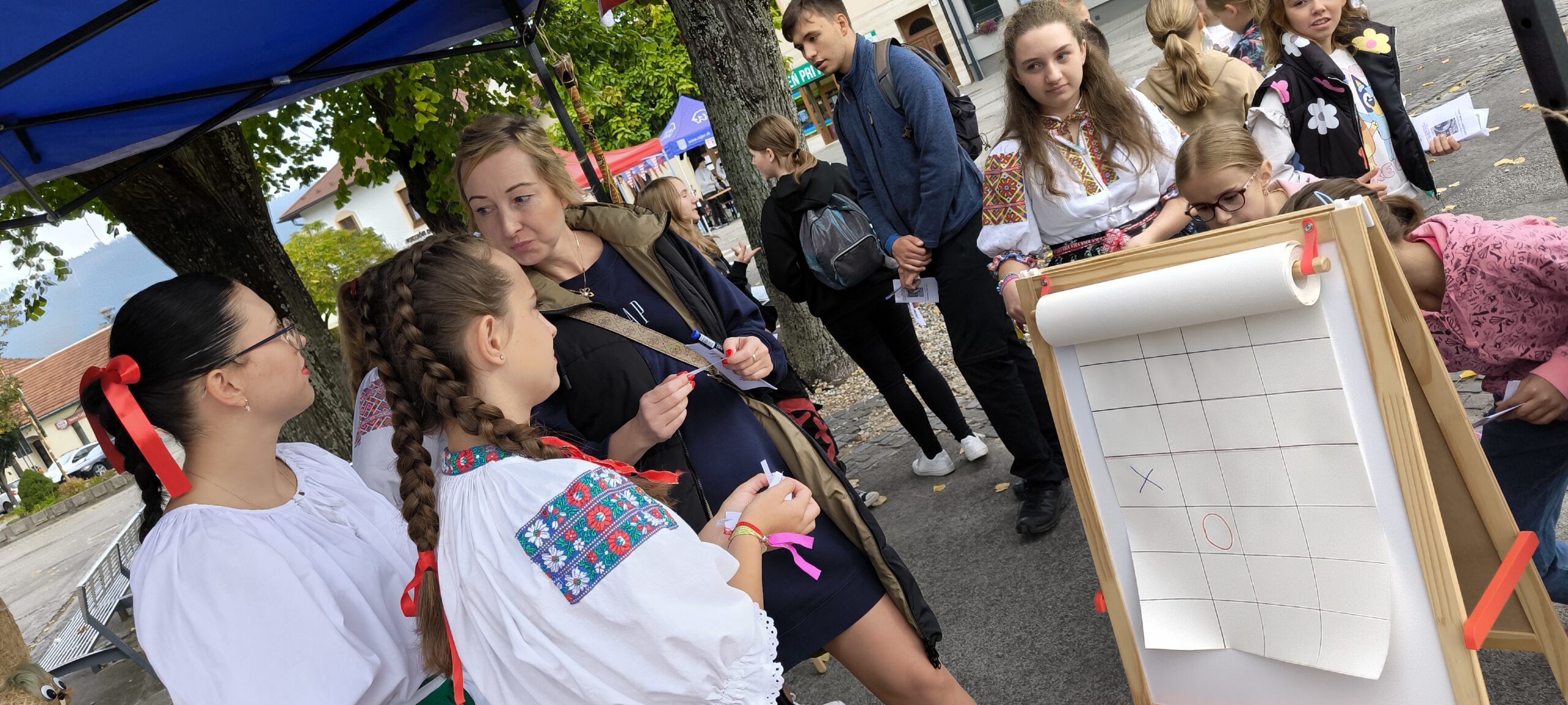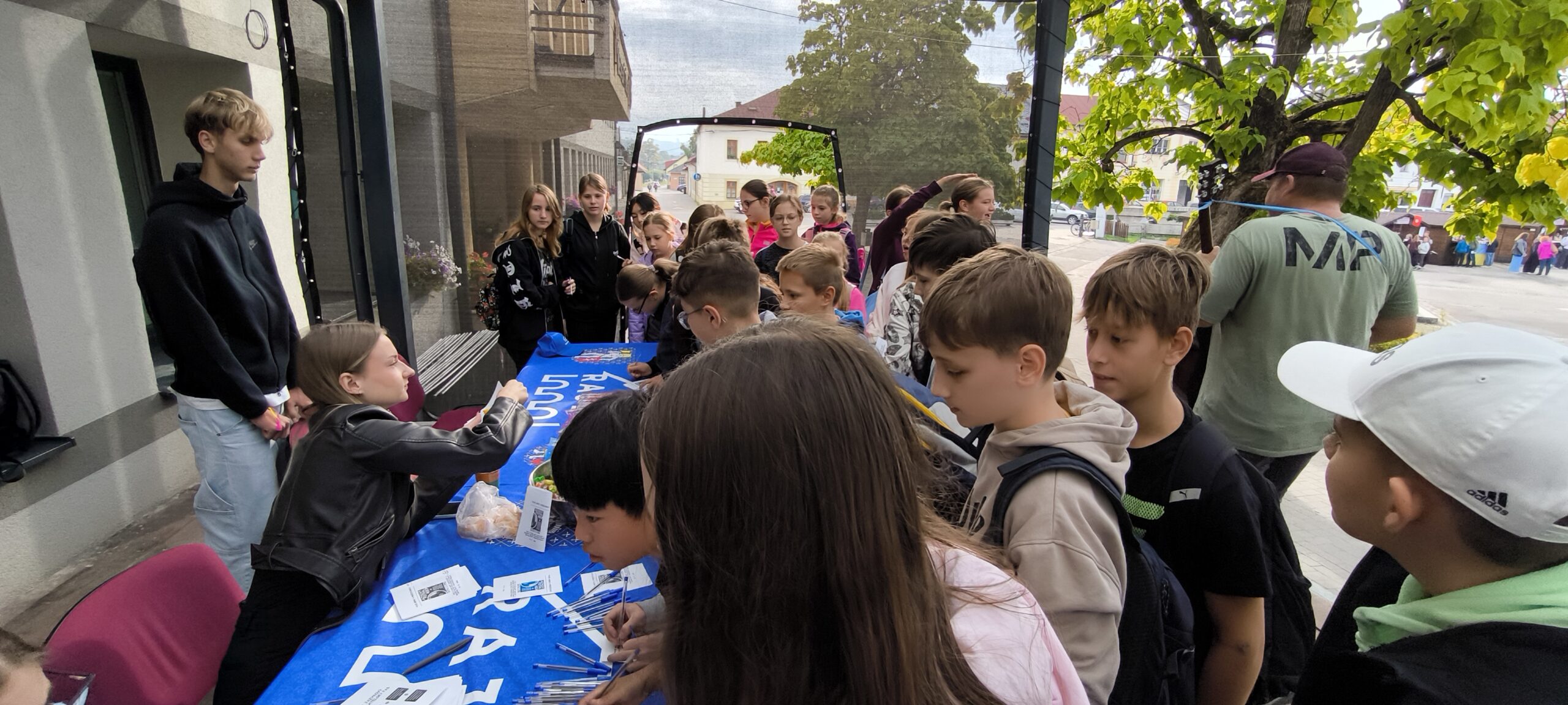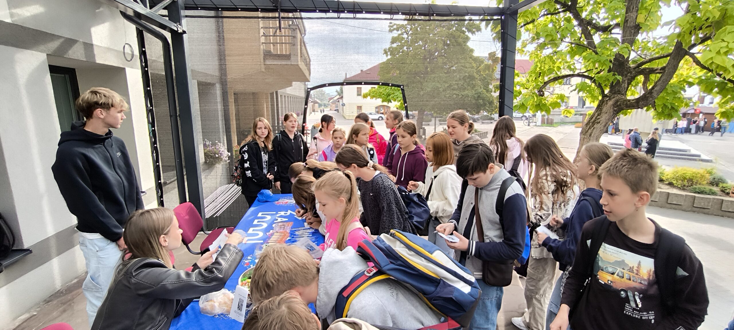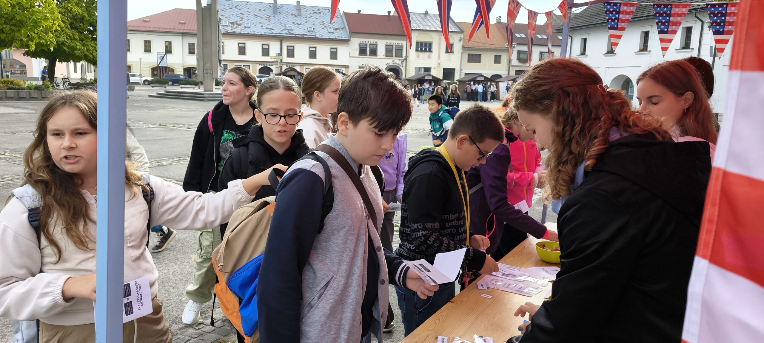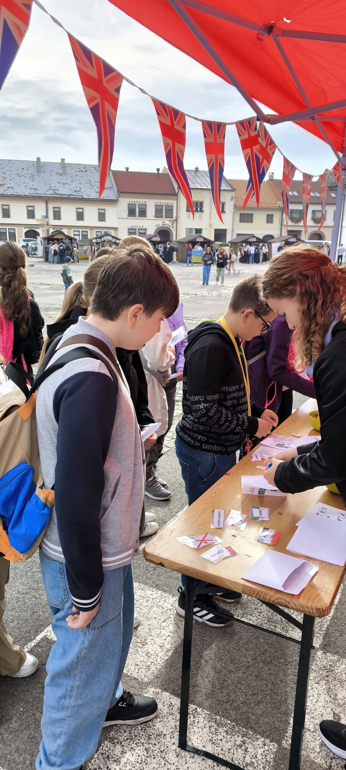 On 25.9. 2024 we sixth graders and some eighth graders visited the square in Rajec, where a Language Festival with the subtitle Languages and Movement for Peace took place on the occasion of the European Day of Languages. First we experienced a short but fun bus journey to Rajec. In the square we were given cards to collect stamps from different stalls. At the stalls we learnt many interesting things, we learnt how to pronounce words in the language, we had a little food tasting and we had a lot of fun. Some of us who took part in the raffle also took home interesting prizes from the event. After two hours of informative fun, we returned to the bus which took us back to school. A short video is also available at this link.