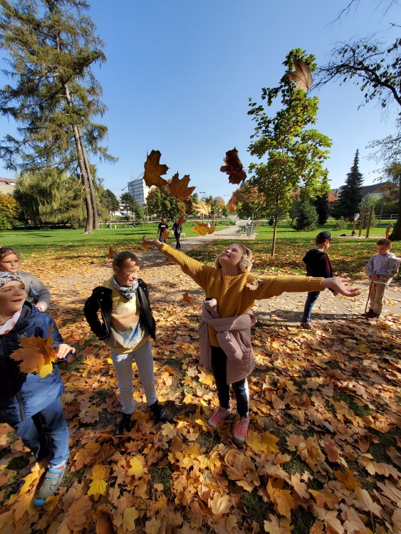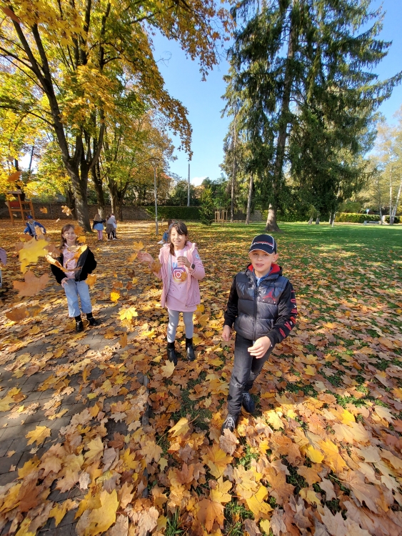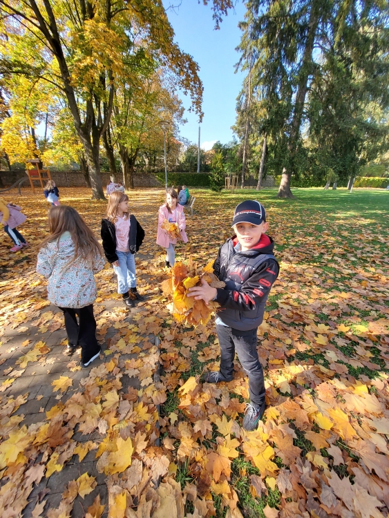 Finally it came at least for a few days, so the pupils of III.LN went on Friday 7.10. for a walk in the park, to collect leaves and chestnuts for autumn decoration.