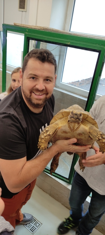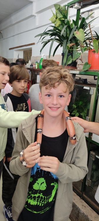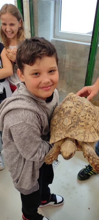 On Monday, 12. On September, we visited the Mini Zoo on Zvolenska Street in Žilina with the pupils of VI.SB class. We saw llamas, turtles, porcupines, monkeys, bunnies, cats, parrots, but we were not afraid of snakes, lizards or porcupines. We would like to thank our former colleague Róbert Štolf for the wonderful experience, who made the experience of the animal exhibition more enjoyable with his engaging narration.