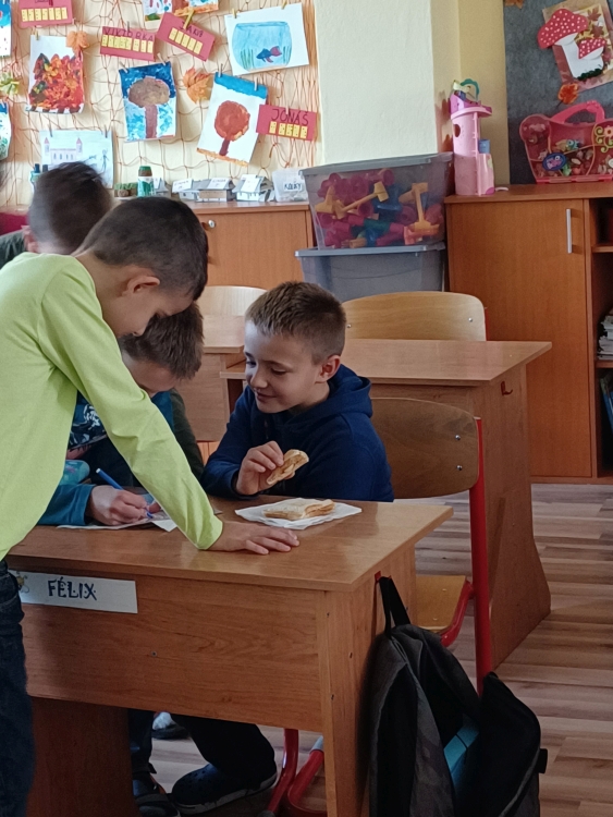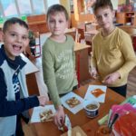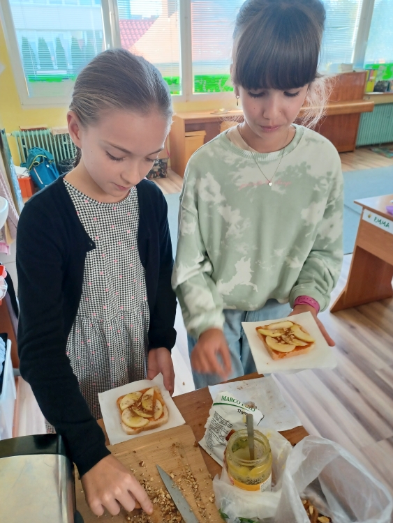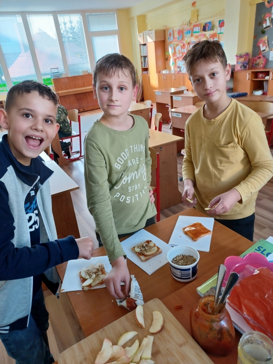 The beautiful autumn continued in the month of October. We decorated the classroom with autumn pictures, which we made using different art techniques. During the healthy eating week we baked healthy apple toast. Everyone who stayed in the club could join in and serve their own toast. We used apples, honey, cinnamon, nuts and whole wheat toasted bread. Everyone loved it and we made the whole school cheer. During one nice day we went for a walk to Bôric park. The next days were dedicated to Halloween decorations, some of us drew nice pictures and made napkin scarecrows which we used to make Halloween wreaths…and we enjoyed the Halloween party where all the scarecrows from the whole club had fun.