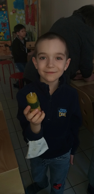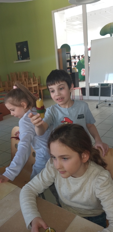 On 25.3.2022 was a sunny and pleasant Friday, perfect for a walk. And so Ladybugs went to the library, where they had a talk about bees prepared for us. After a nice presentation, during which they learned a lot of interesting facts about the life of bees, they could make their own beeswax candle.This was an activity that the children liked very, very much and they could show their skill and dexterity in creating.