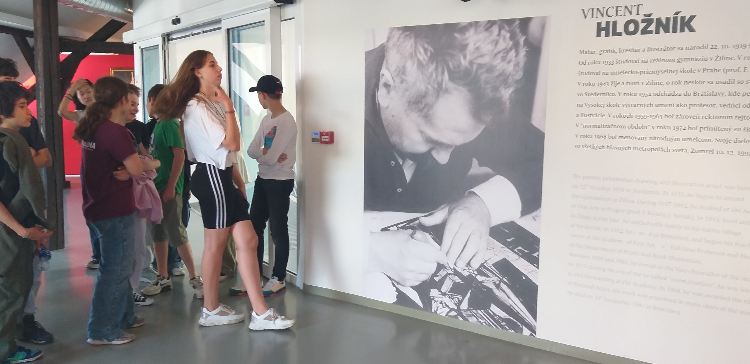 Pupils of VII.SVA and VII.SVB got acquainted with the work of Vincent Hložník, a native of Svederník, near Žilina. They tried a visual warm-up, attempted to express their current feelings through colour and learned more about the Cubist art movement.