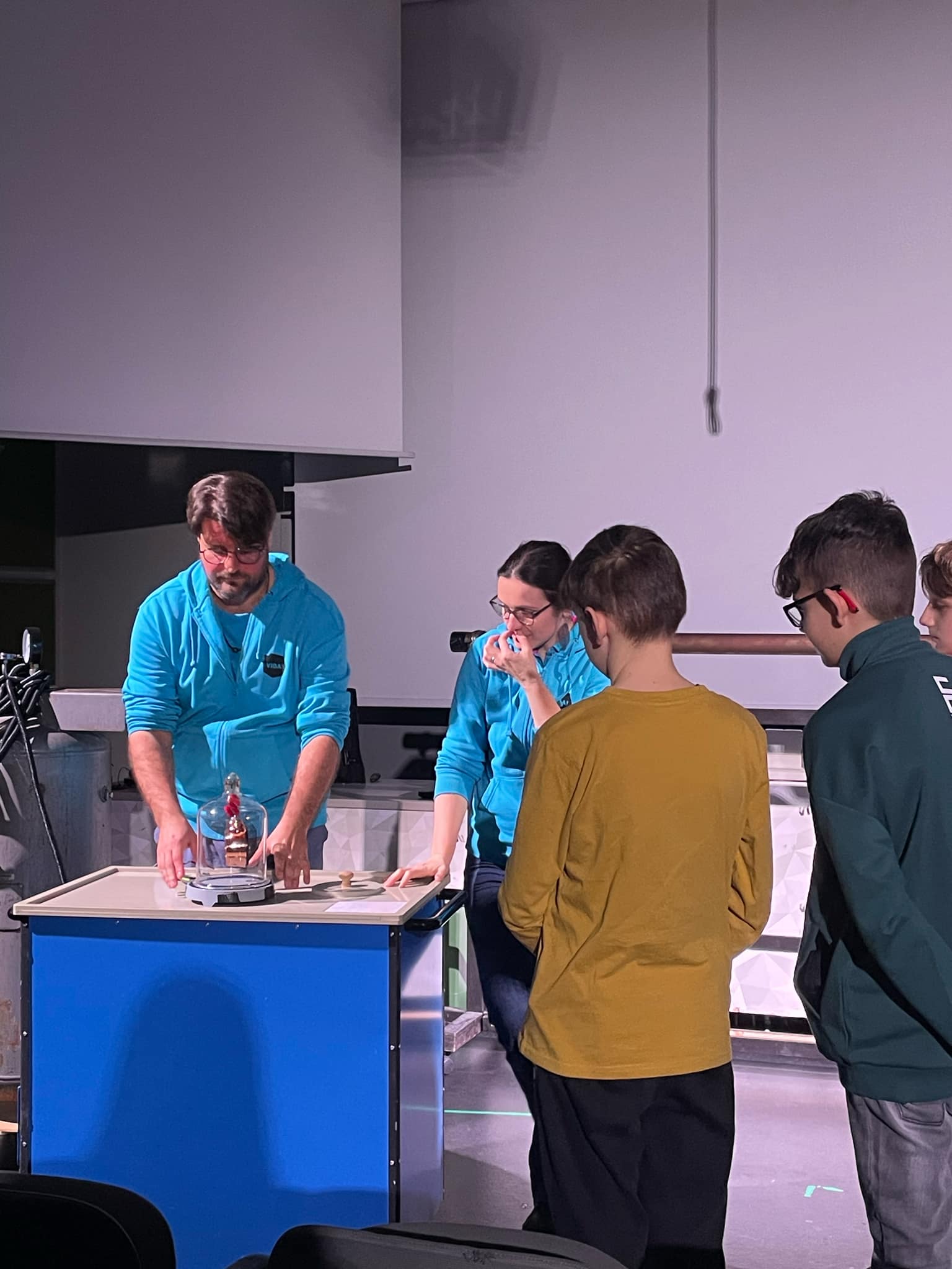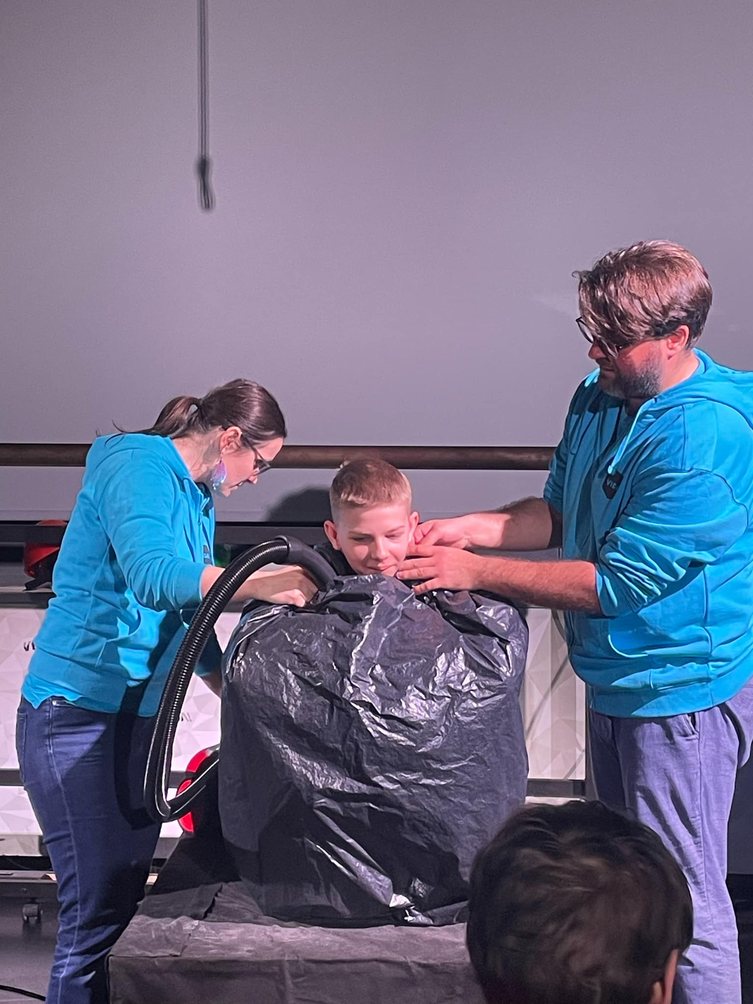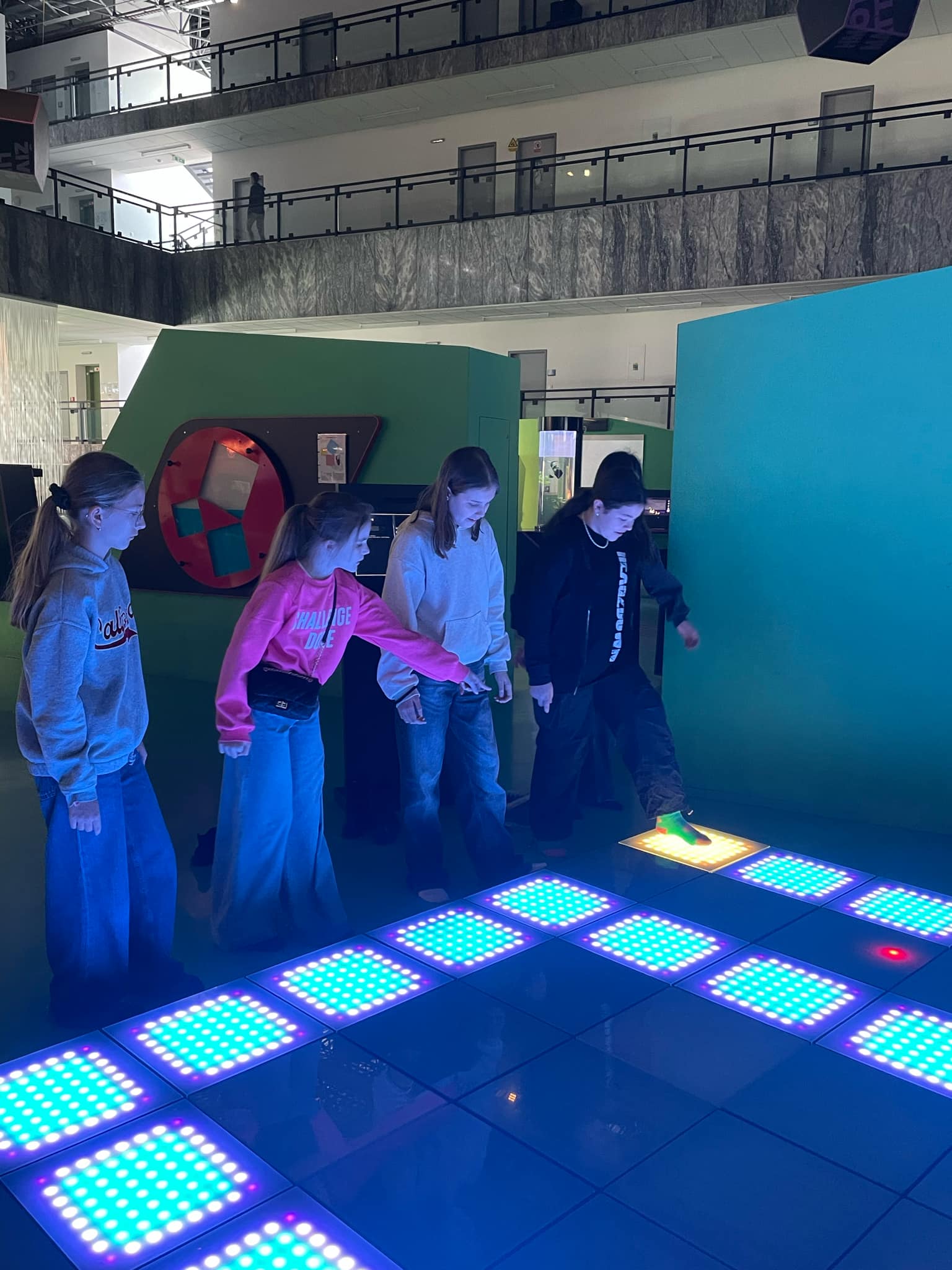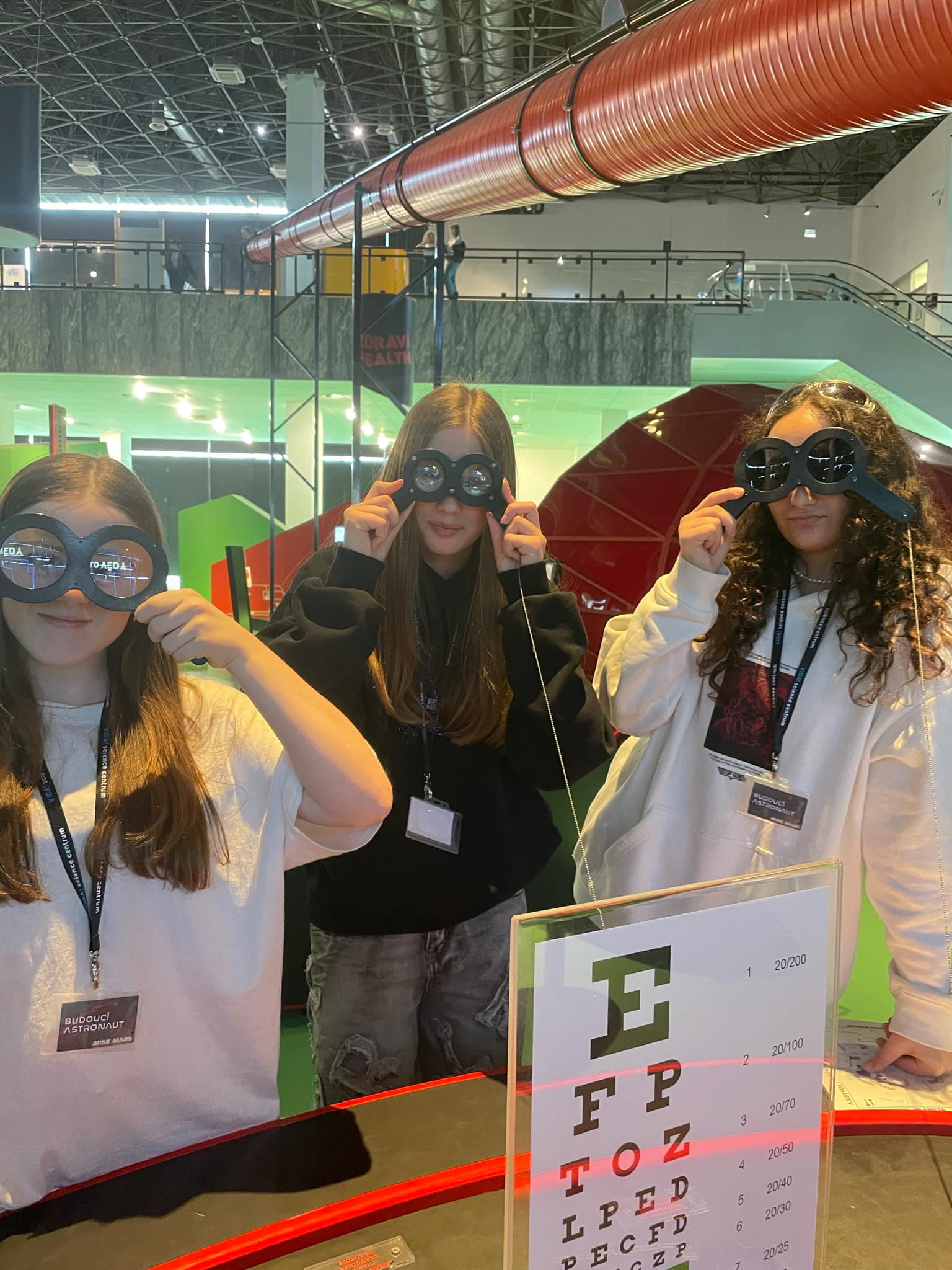 On 19.3.25 we visited the VIDA science park in Brno with pupils of the 6th, 7th and 8th grade. This interactive centre offers more than 180 exhibits on an area of 6,200 m², which allow you to playfully discover how the world around us works. The exhibition is divided into four thematic units: Planet, Civilization, Man and Microworld. The programme also included a demonstration block – on the theme of pressure – where visitors could see for themselves how pressure works in different situations. Among the most interesting exhibits were a bicycle ride on a rope several meters above the ground, or a rotating room, which our pupils tried out.