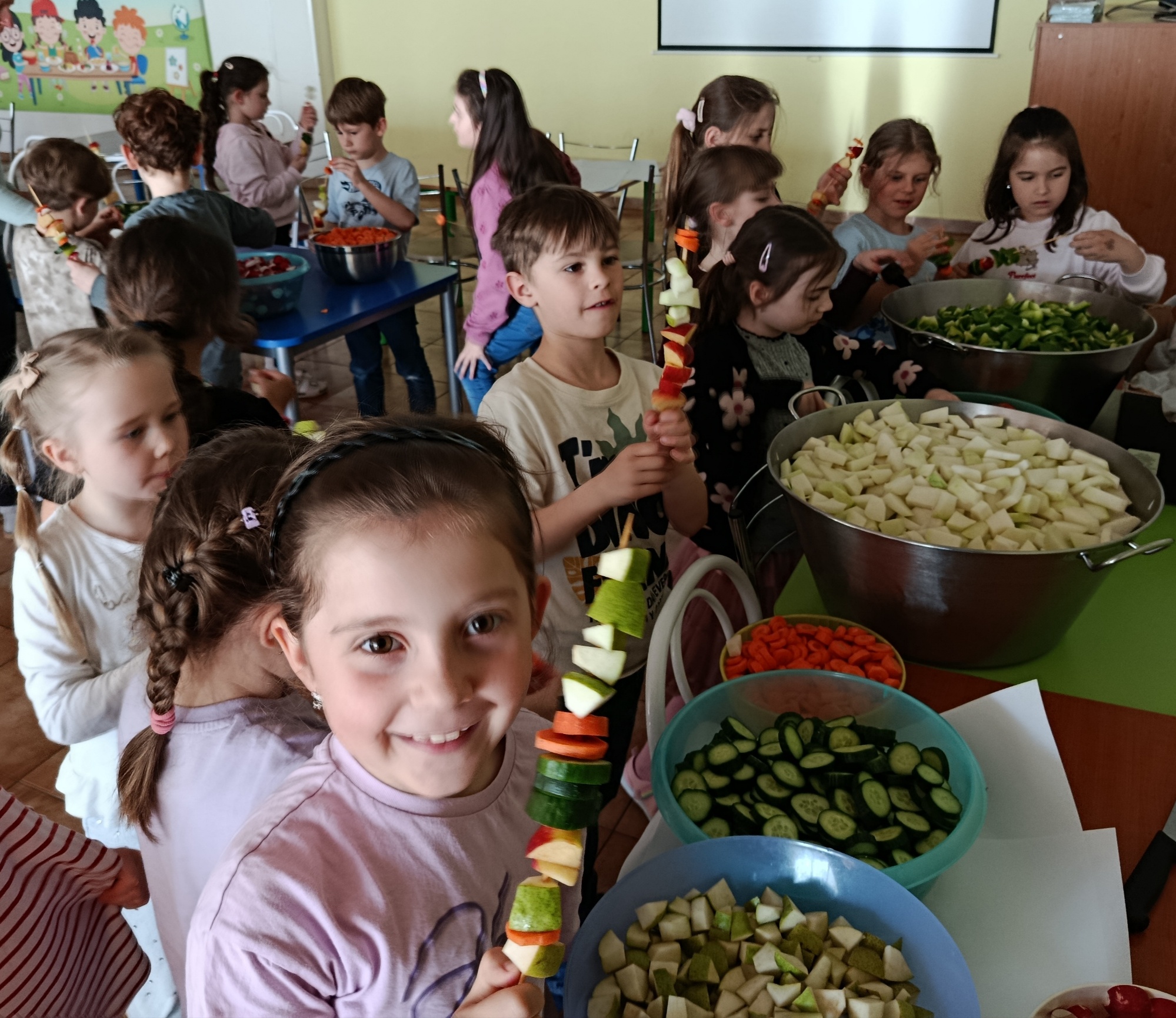 On 9.4.2026 all departments in the school club had a tasting from Lunys “Vegetables vs. fruit”. The event was a great success. The teachers cut up vegetables and fruit from which the children made vitamin sticks, but before that we had a knowledge quiz. At the end of the event the children made a mini worksheet. We would like to thank Lunys very much for the good vegetables and fruit.