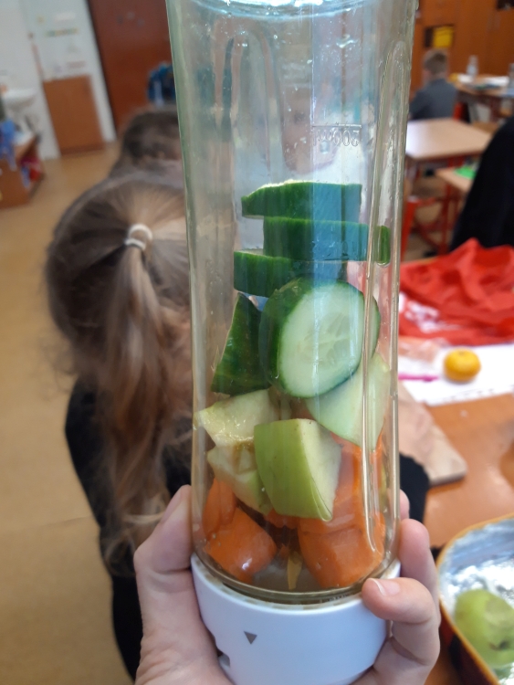 Fruit? Vegetables? Yummy. On Friday we had a smoothie day at the SSKD. With the help of the teacher, we freshmen made 2 kinds of mixed vitamin bombs: fruit and vegetable smoothies. We liked them both. Some of us tried to make smoothies at home with the help of our parents.