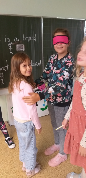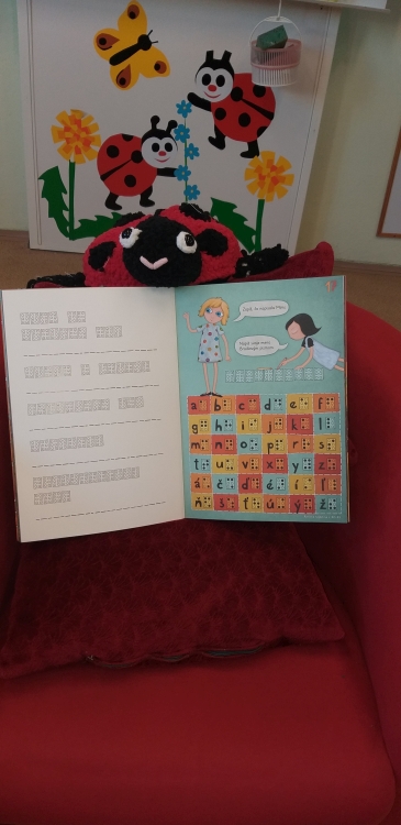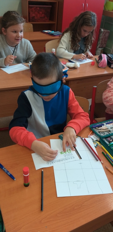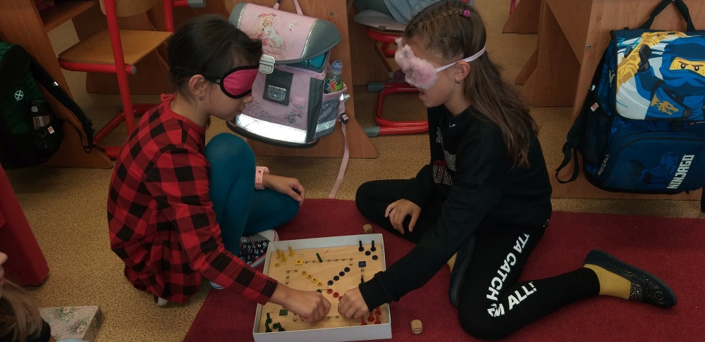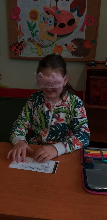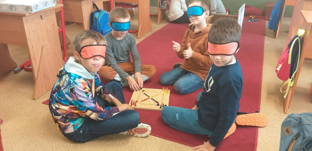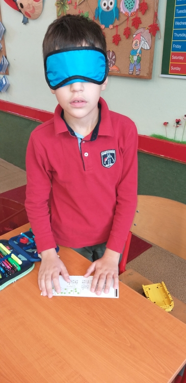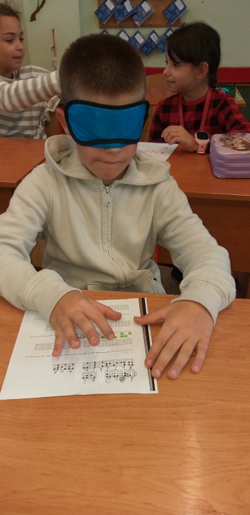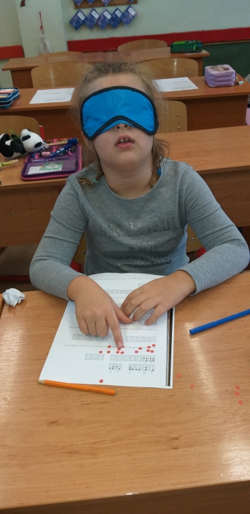 During the activities and games, the children worked with aids such as: talking scales, talking watches, books, played with toys, just like blind children and tried to write their name in Braille.