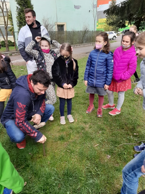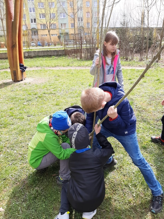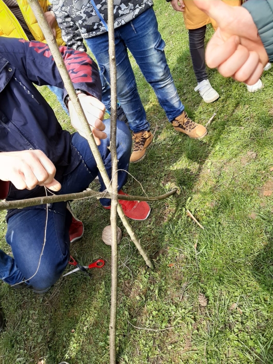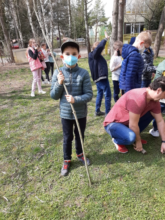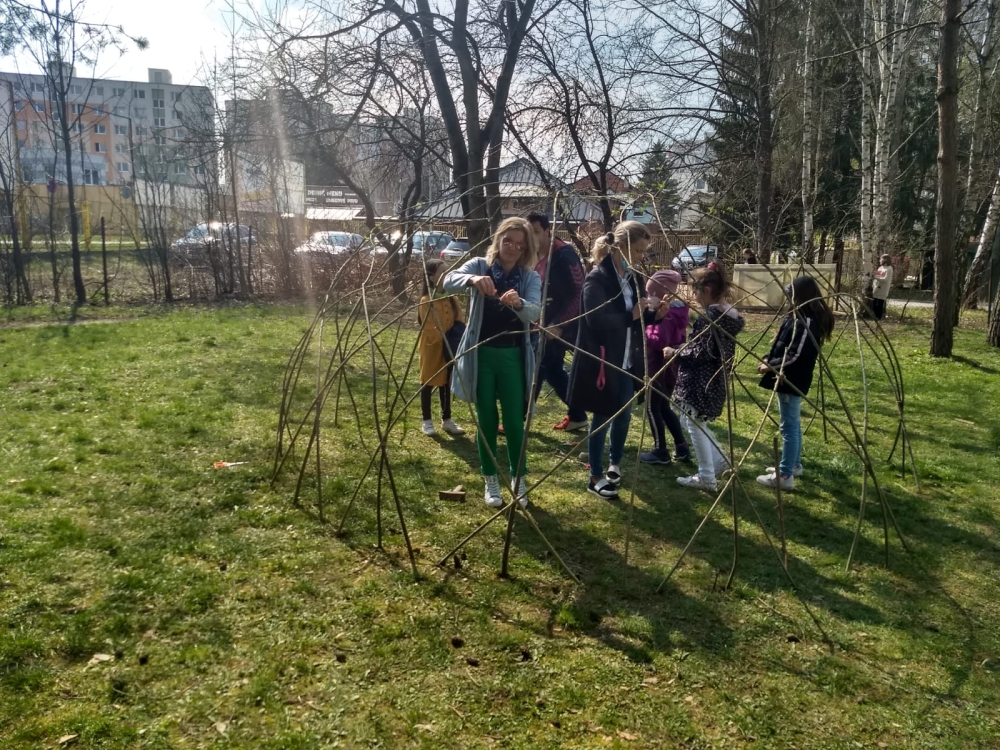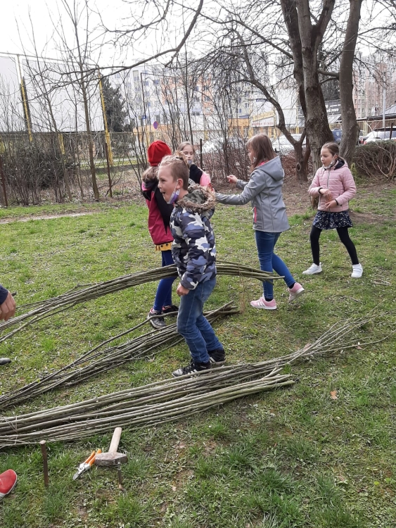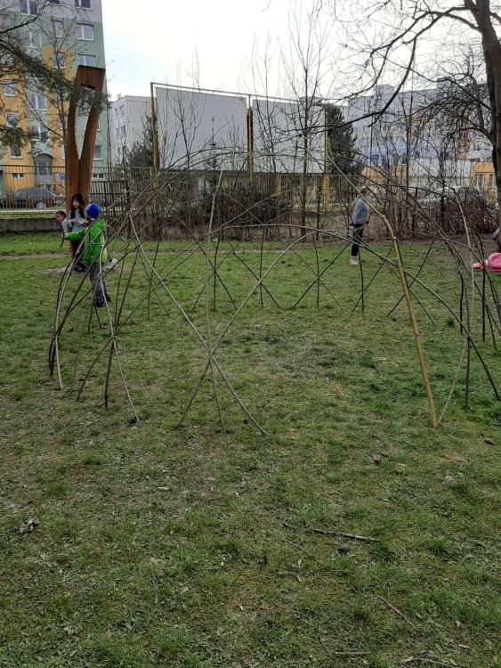 We made a wicker house in the schoolyard. We are watching our rods take root. To keep our house green, we have to water it and take care of it.