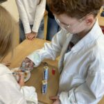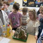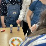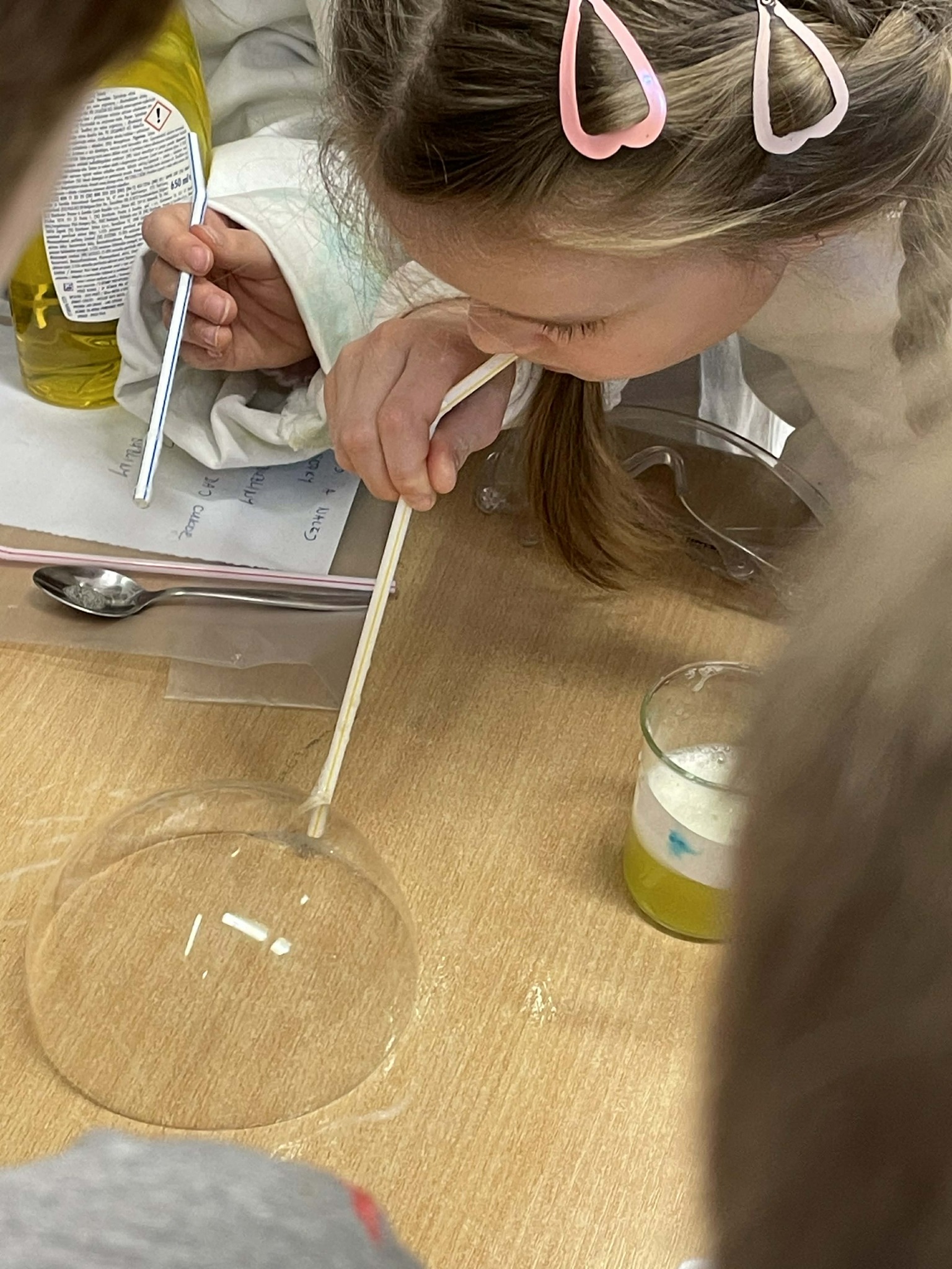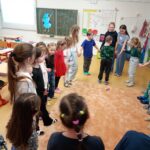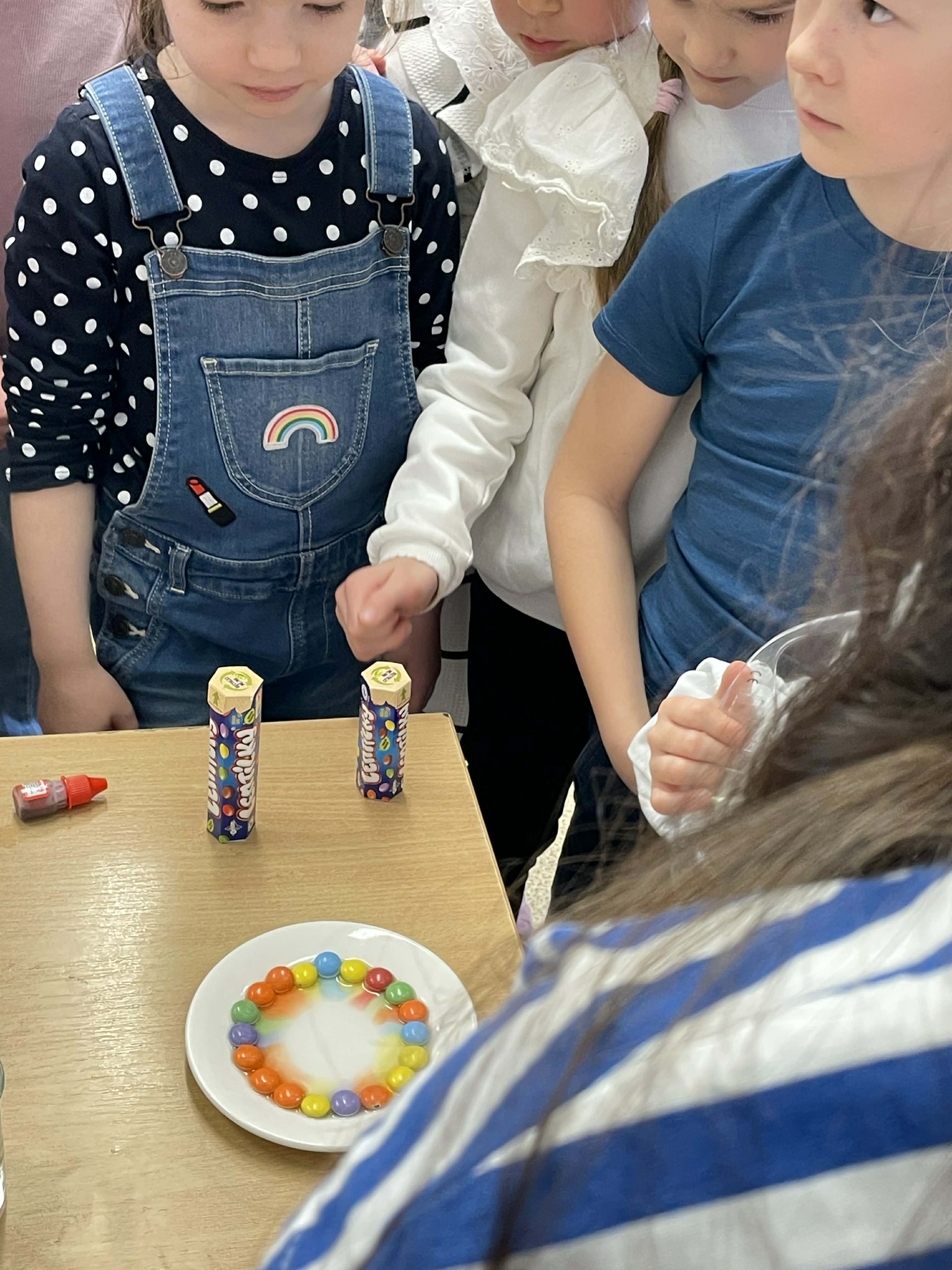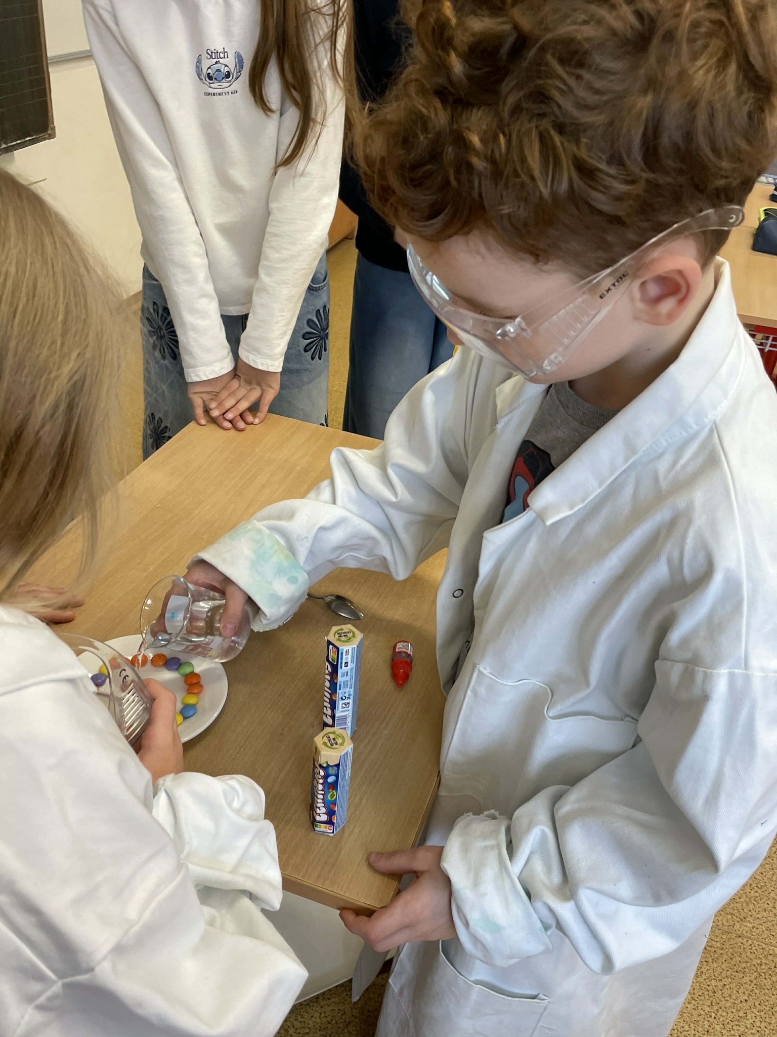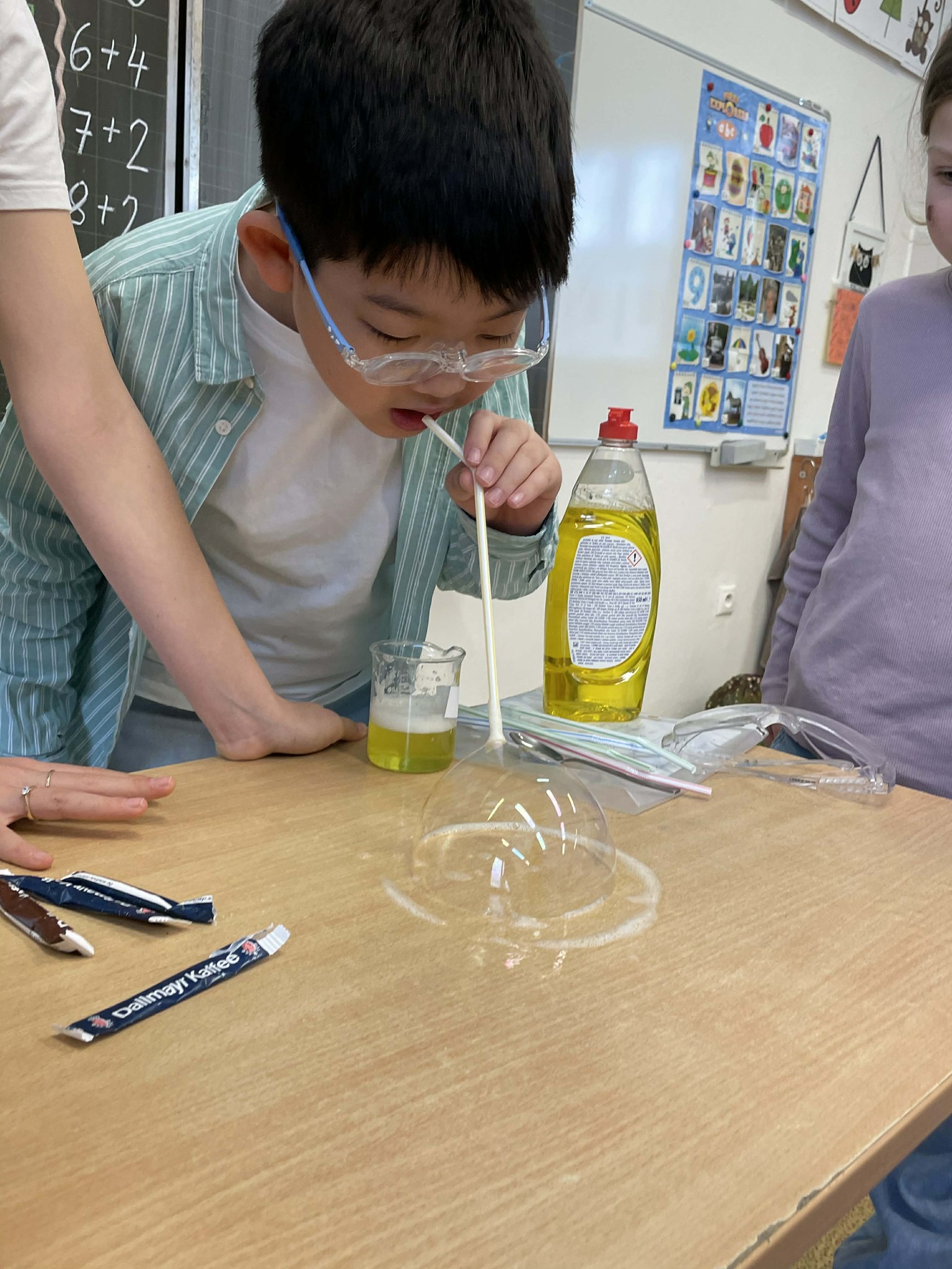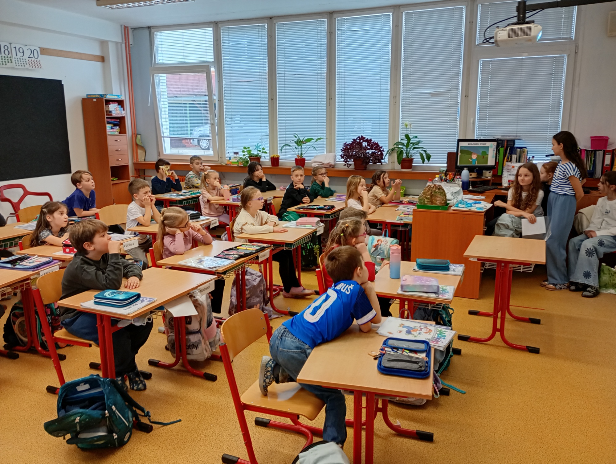 Today was dedicated to the topic of water for our first graders. On the occasion of the upcoming World Water Day, which is commemorated on 22 March, the older pupils from Year 5 – Zoe, Louisa, Gretka and Adelka – prepared an interesting peer education about the importance of water in our lives. During the meeting they asked a lot of questions – what is water important for, where we need it everywhere and also what belongs and what doesn’t belong in water. Together they also watched a short video about the water cycle in nature. In addition, they also prepared fun experiments which were very interesting for all of them – we saw an active volcano, a colourful rainbow made of ribbons and the formation of bubbles.