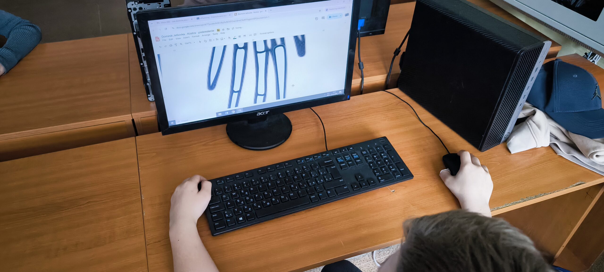 Naši piataci sa v rámci eTwinning projektu pustili do zaujímavej výzvy, ktorá prepája technológie, kreativitu a vedomosti z prírodovedy. V nástroji Google Drawings si vyskúšali prekresľovanie kostí hornej časti ľudskej kostry pomocou kriviek, čím si nielen precvičili presnosť a trpezlivosť, ale zároveň lepšie pochopili ich tvar a funkciu.