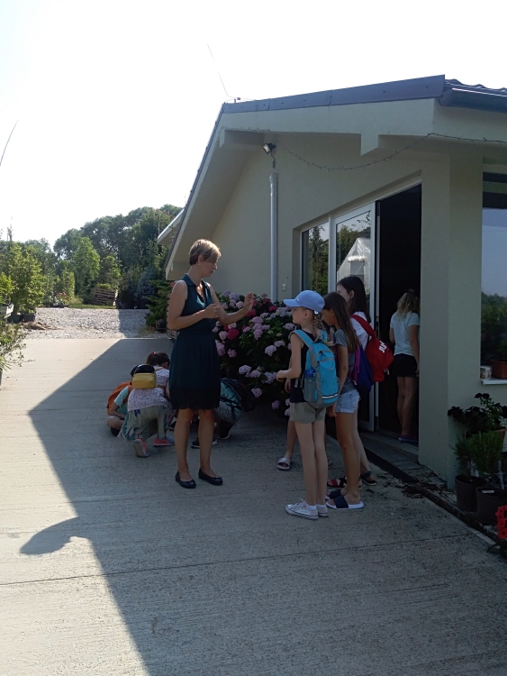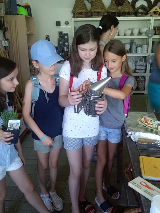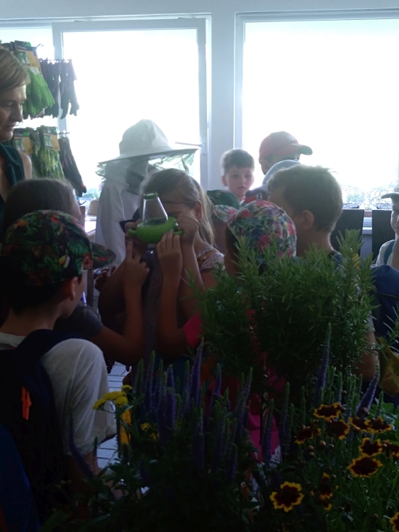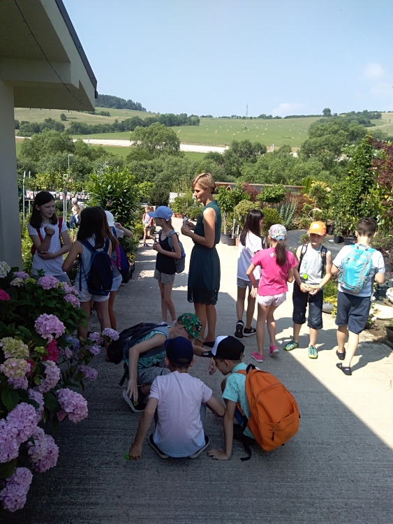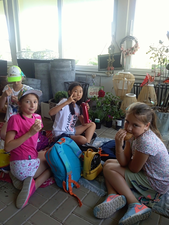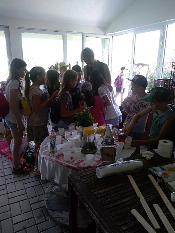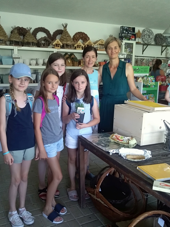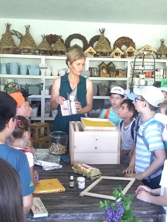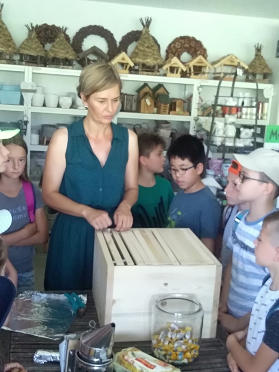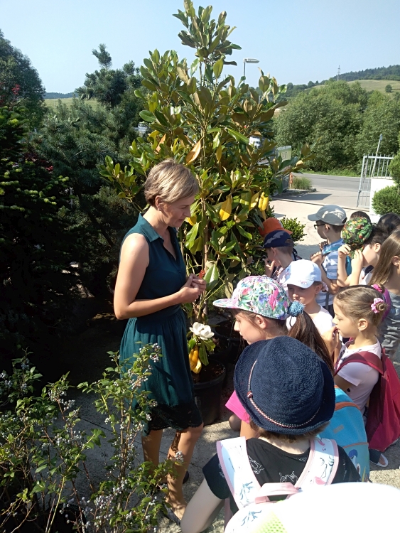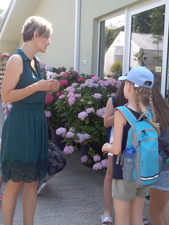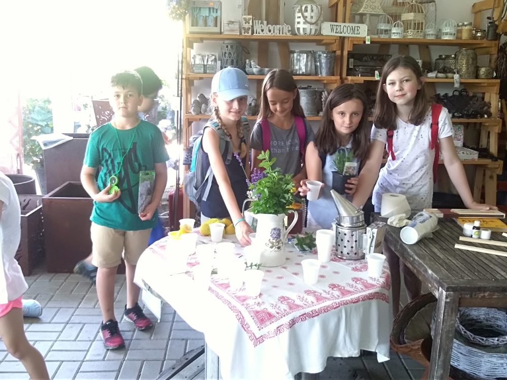 Horúčavy posledných dní nám nedajú dýchať. Aj preto sme sa my- tretiaci (lienky a ježovia) rozhodli, že ich strávime oveľa príjemnejšie než v škole. Vybrali sme sa do záhradného kráľovstva našej známej pani Pončákovej. Hneď pri vstupe nás osviežila šťavnatá zeleň rastlín pomiešaná s pastelovými odtieňmi ružovej, fialovej. Aj vzduch bol iný. Bol nabitý pozitívnou energiou rastlín a milého personálu daného záhradníctva, vlastne kráľovstva. Pani kráľovná nás kráľovsky privítala. Hneď nás upozornila na ojedinelú vzácnosť – stálozelenú magnóliu, ktorá sa rozhodla, že zakvitne. Určite to bolo len kvôli nám. Veď ostatné magnólie už dokvitli pred mesiacom. No a táto nádhera jednoducho čakala na nás!To bolo privítanie! Kráľovsky obrovské biele kvety nás opájali svojou vôňou. Včielky a motýle sme mohli počítať priamo pred sebou. No a o tých včielkach sme sa dozvedeli viac. Aj o práci včelára. O tom, ako prácne si vyrábajú úle, plásty,…. Ako sa o úľ starajú, aké oblečenie a náradie používajú. Mohli sme ovoňať aj výrobky včelárov. Aj samotný med či medové cukríky. Naša urodzená kráľovná – pani Pončáková – nás dokonca pohostila. A opäť kráľovsky. Ponúkla nám chladený voňavý nápoj s medom ochutený mätou, medovkou, levanduľou, citrónom. Čo viac človeku treba! V tomto kráľovstve sme si poobzerali najrôznejšie vtáčie napájadlá, príbytky pre hmyz, dokonca existuje aj kŕmidlo pre motýle a včely. Dokonca aj napájadlo. A predstavte si, že tu už vymysleli aj domček pre žaby! Pôsobivé. To by človek neuveril.