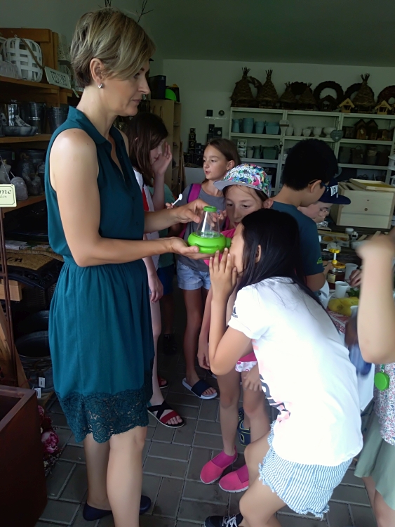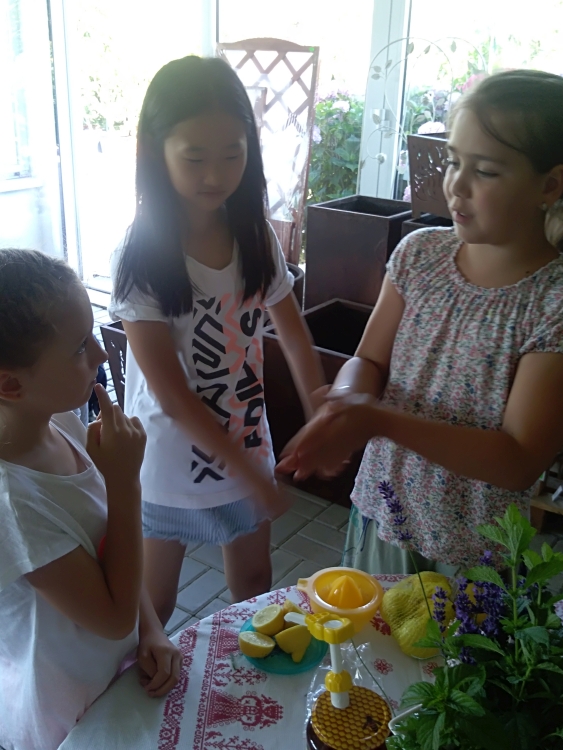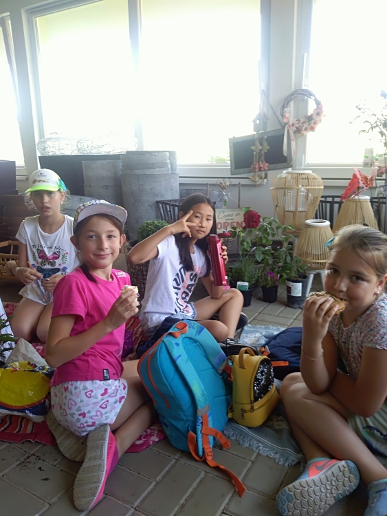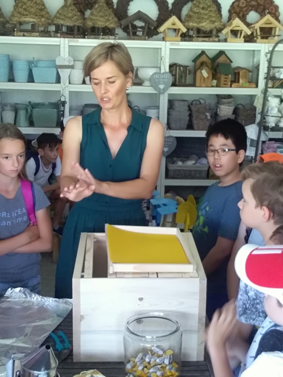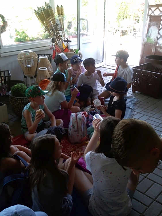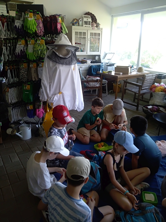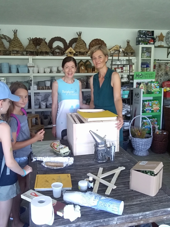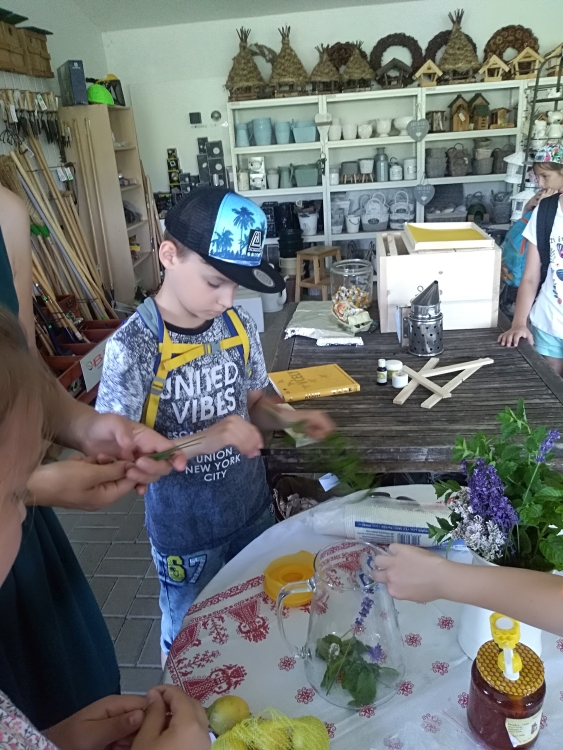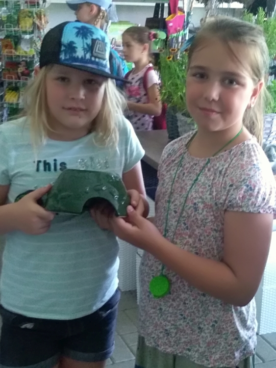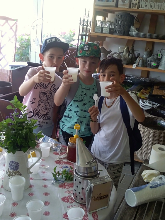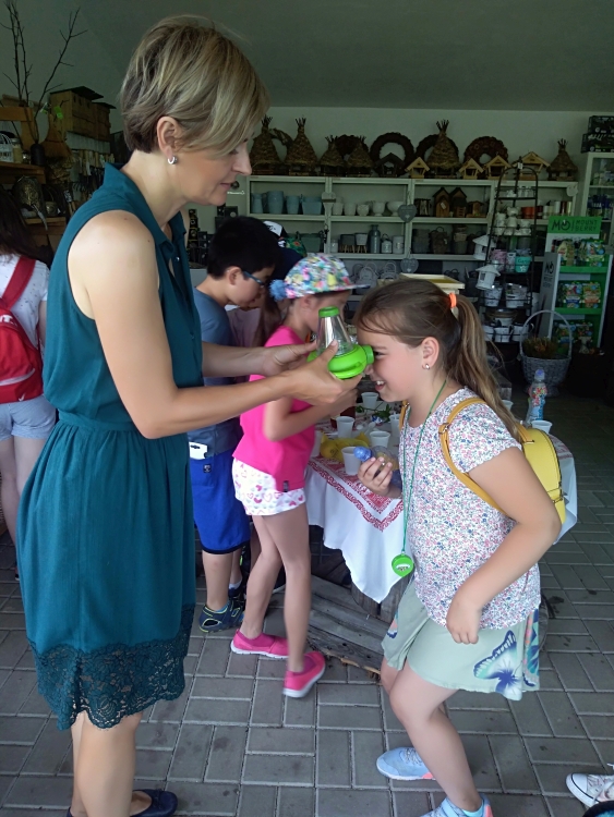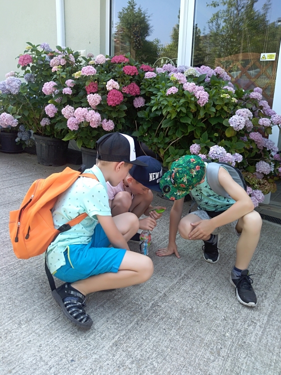 Horúčavy posledných dní nám nedajú dýchať. Aj preto sme sa my- tretiaci (lienky a ježovia) rozhodli, že ich strávime oveľa príjemnejšie než v škole. Vybrali sme sa do záhradného kráľovstva našej známej pani Pončákovej. Hneď pri vstupe nás osviežila šťavnatá zeleň rastlín pomiešaná s pastelovými odtieňmi ružovej, fialovej. Aj vzduch bol iný. Bol nabitý pozitívnou energiou rastlín a milého personálu daného záhradníctva, vlastne kráľovstva. Pani kráľovná nás kráľovsky privítala. Hneď nás upozornila na ojedinelú vzácnosť – stálozelenú magnóliu, ktorá sa rozhodla, že zakvitne. Určite to bolo len kvôli nám. Veď ostatné magnólie už dokvitli pred mesiacom. No a táto nádhera jednoducho čakala na nás!To bolo privítanie! Kráľovsky obrovské biele kvety nás opájali svojou vôňou. Včielky a motýle sme mohli počítať priamo pred sebou. No a o tých včielkach sme sa dozvedeli viac. Aj o práci včelára. O tom, ako prácne si vyrábajú úle, plásty,…. Ako sa o úľ starajú, aké oblečenie a náradie používajú. Mohli sme ovoňať aj výrobky včelárov. Aj samotný med či medové cukríky. Naša urodzená kráľovná – pani Pončáková – nás dokonca pohostila. A opäť kráľovsky. Ponúkla nám chladený voňavý nápoj s medom ochutený mätou, medovkou, levanduľou, citrónom. Čo viac človeku treba! V tomto kráľovstve sme si poobzerali najrôznejšie vtáčie napájadlá, príbytky pre hmyz, dokonca existuje aj kŕmidlo pre motýle a včely. Dokonca aj napájadlo. A predstavte si, že tu už vymysleli aj domček pre žaby! Pôsobivé. To by človek neuveril.