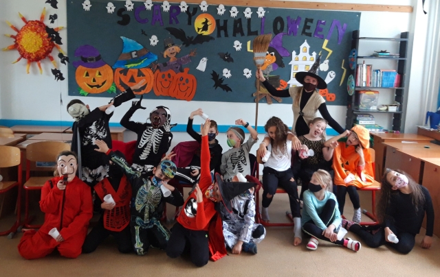Trieda Delfínov si užila Halloween party naplno tancom, pohybovými a kooperačnými hrami, lúštením tajničiek s halloweenskou tématikou. Bolo to popoludnie plné zábavy.
