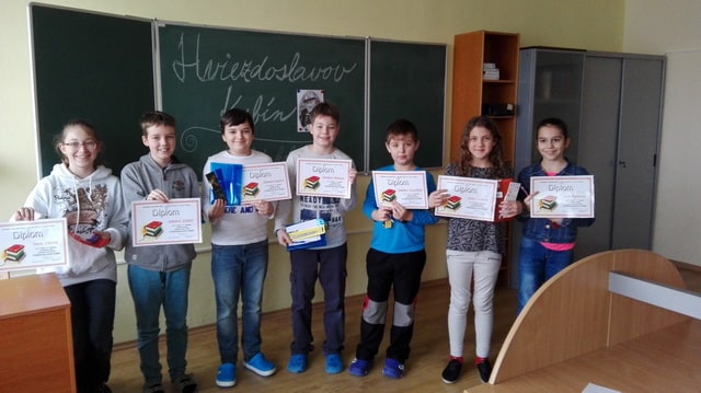 <p>Dňa 18.2.2016 sme mali možnosť zažiť príjemné recitátorské popoludnie. V priestoroch našej Školskej knižnice sa uskutočnilo školské kolo recitátorskej súťaže Hviezdoslavov Kubín. Zúčastnili sa ho žiaci 5. a 7. ročníka a na rozdiel od predošlých rokov nás milo prekvapila vyššia účasť chlapcov. Všetci zúčastnení podali skvelé výkony. Našu školu budú začiatkom marca reprezentovať David Beňuš (V.FB) a Jakub Grof (VII.SVB).<br /><br /> <strong>Kategória II. Prednes poézie:</strong><br /> 2.miesto: Lucia Ptačinová (V.FA)<br /> 3.miesto: Terézia Juríková (V.FB)<br /><br /> <strong>Kategória II. Prednes prózy:</strong><br /> 1.miesto: David Beňuš (V.FB)<br /> 2.miesto: Jakub Kozáčik (V.FB)<br /> 3.miesto: Adam Sakáč (V.FB)<br /><br /> <strong>Kategória III. Prednes prózy:</strong><br /> 1.miesto: Jakub Grof (VII.SVB)<br /> 2.miesto: Danka Uherová (VII.SVA)<br /><br /> Všetkým zúčastneným ďakujeme za účasť. Výhercom srdečne blahoželáme a na okresnom kole želáme veľa šťastia.</p>