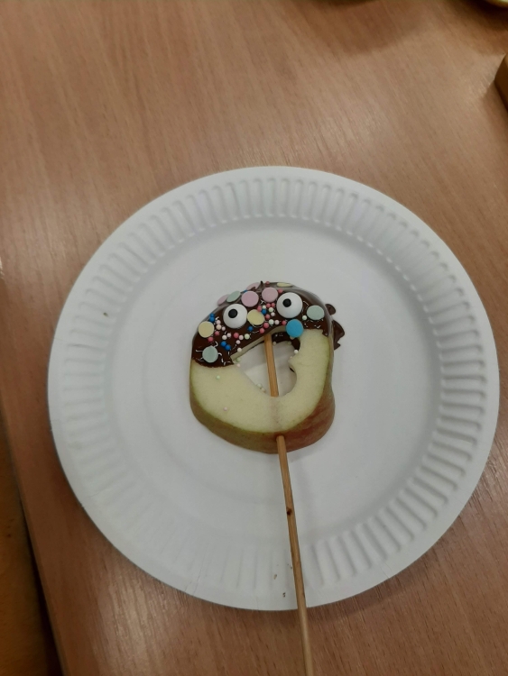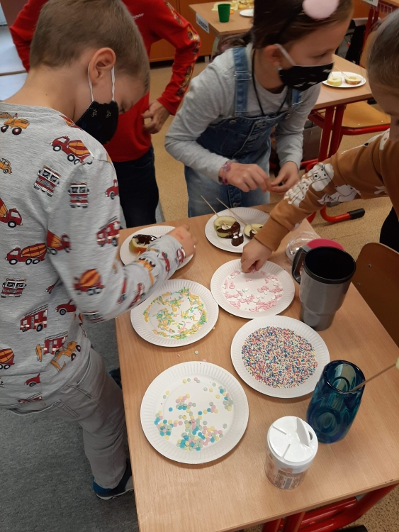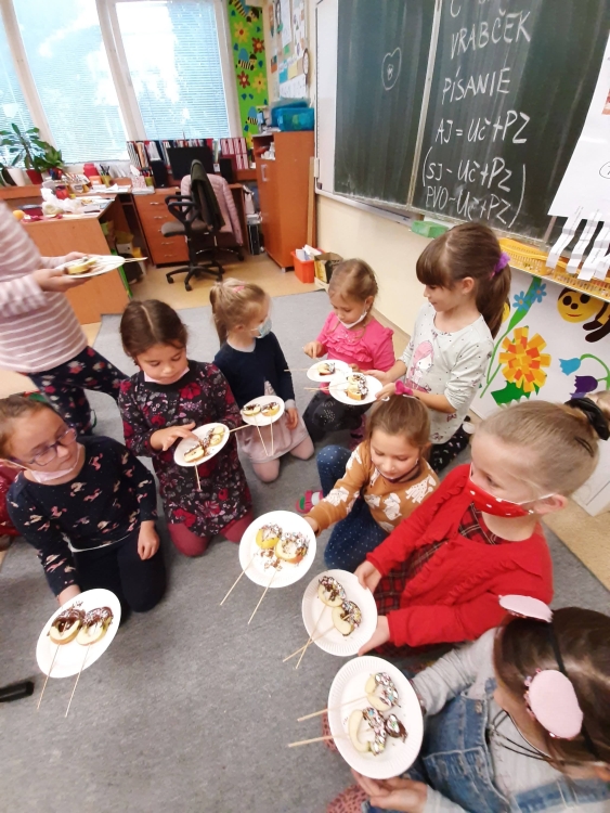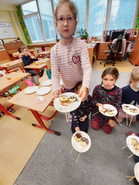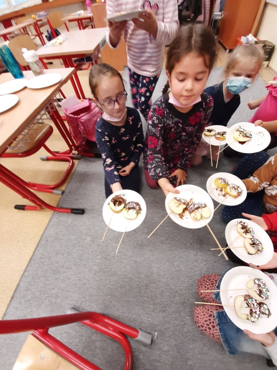 Deti z včielkovej triedy sa zapojili počas školského klubu do projektu Hovorme o jedle. Vyrobili sme si zdravé jablkové lízanky zdobené horkou čokoládou a malou farebnou posýpkou. Práca sa nám vydarila a všetko sme pekne spapali.