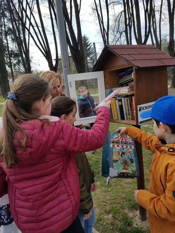 Aj deti z I. a III. vých. oddelenia za zapojili do peknej akcie, ktorej cieľom bolo doniesť knižku a tým sa zapojiť do zberu kníh určených pre knihobudky. My sme niektoré knihy zaniesli v rámci vychádzky osobne do knihobúdky v parku na Bôriku.