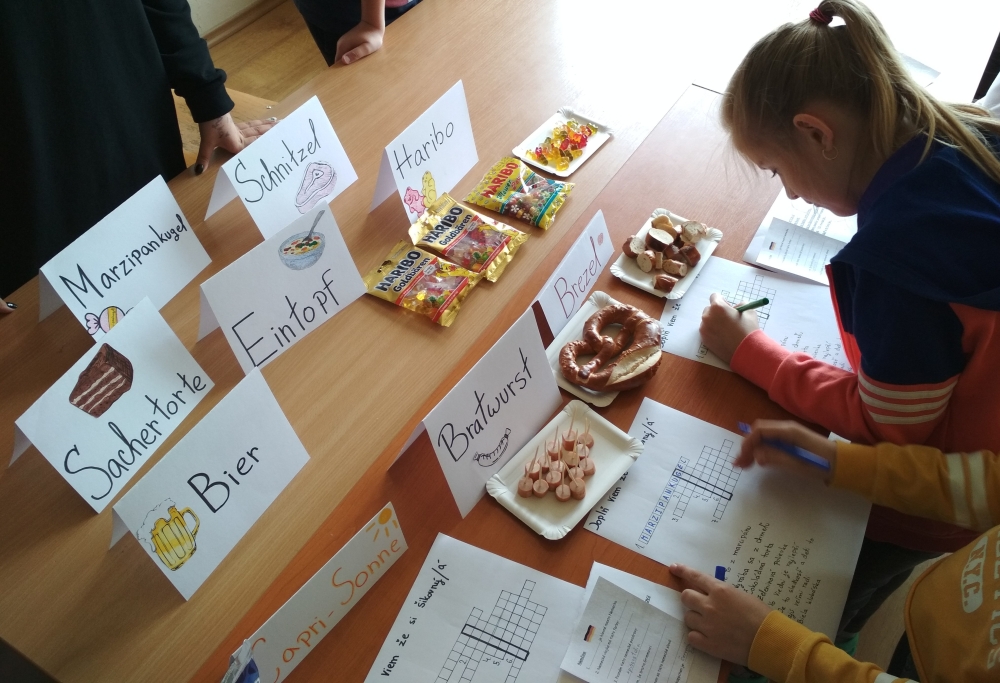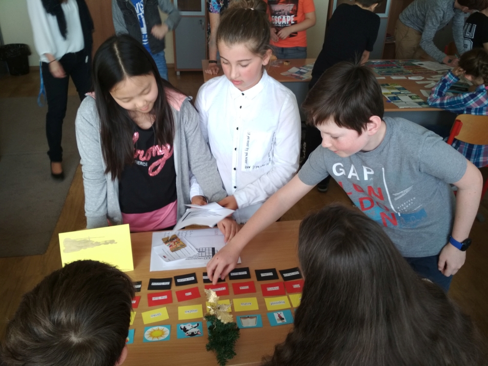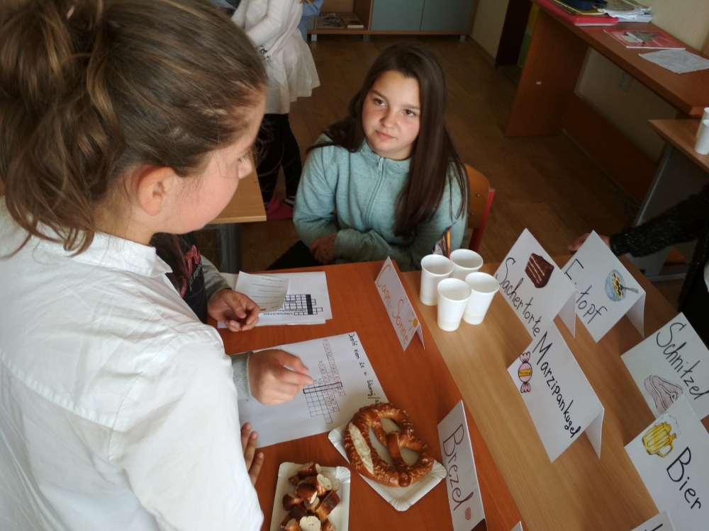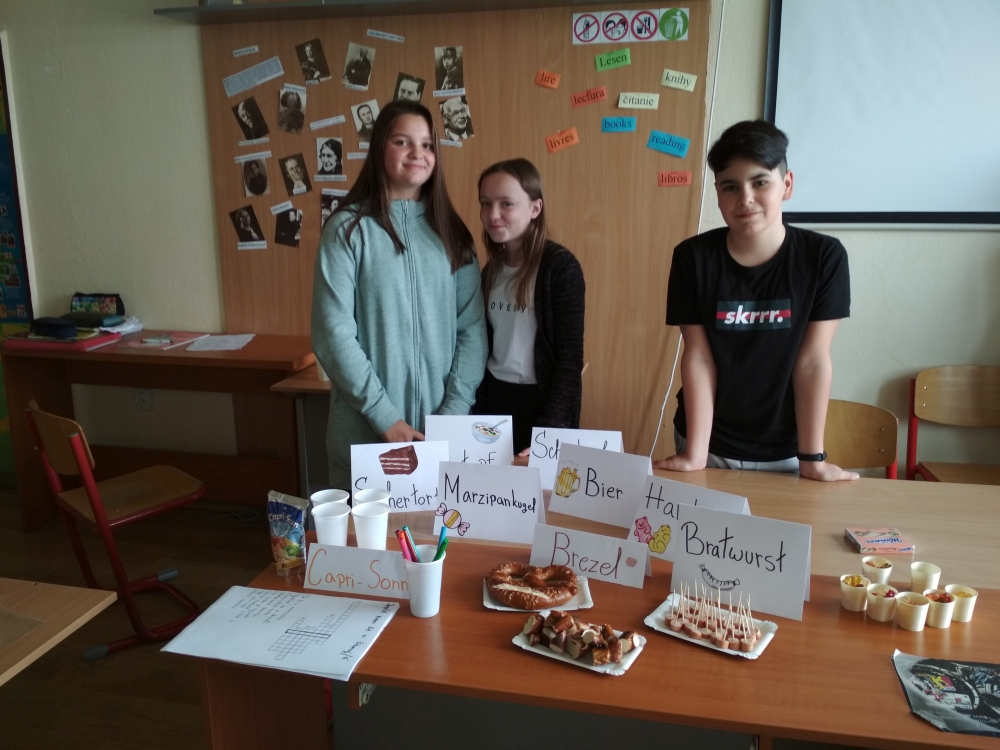 Pravdivosť tejto starej múdrosti si uvedomujeme azda každý deň. Znalosť cudzích jazykov nám uľahčuje život a prispieva aj k porozumeniu medzi ľuďmi. To si počas štúdia cudzích jazykov uvedomujú aj naši siedmaci, ktorí v apríli pripravili pre žiakov štvrtého ročníka prezentáciu nemeckého a španielskeho jazyka. Zatiaľ čo starší mali možnosť prezentovať svoje vedomosti, tí mladší sa mohli pri rozhodovaní medzi nemčinou a španielčinou aj čo-to nové dozvedieť. Aby štvrtákom dodali trochu chuti a inšpirácie, aktívnou hravou formou ich zapojili do spoznávania nových kultúr, významných osobností či najznámejších nemecky a španielsky hovoriacich krajín. V jazykovom okienku si trénovali výslovnosť španielskych a nemeckých slovíčok. Nemčinári pripravili aj malú ochutnávku jedál pochádzajúcich z nemecky hovoriacich krajín. Nemčina alebo španielčina? Teraz sa už len správne rozhodnúť!