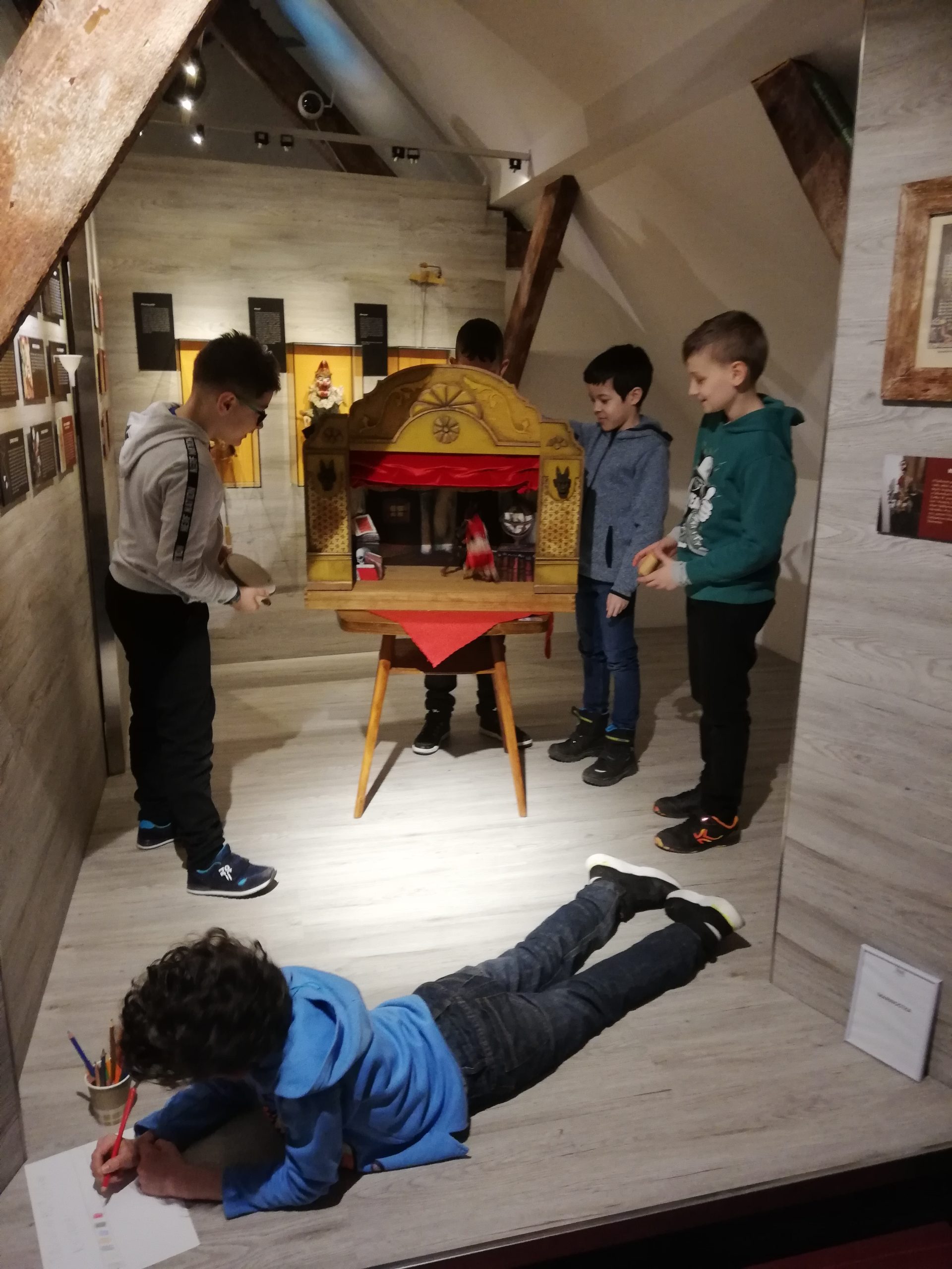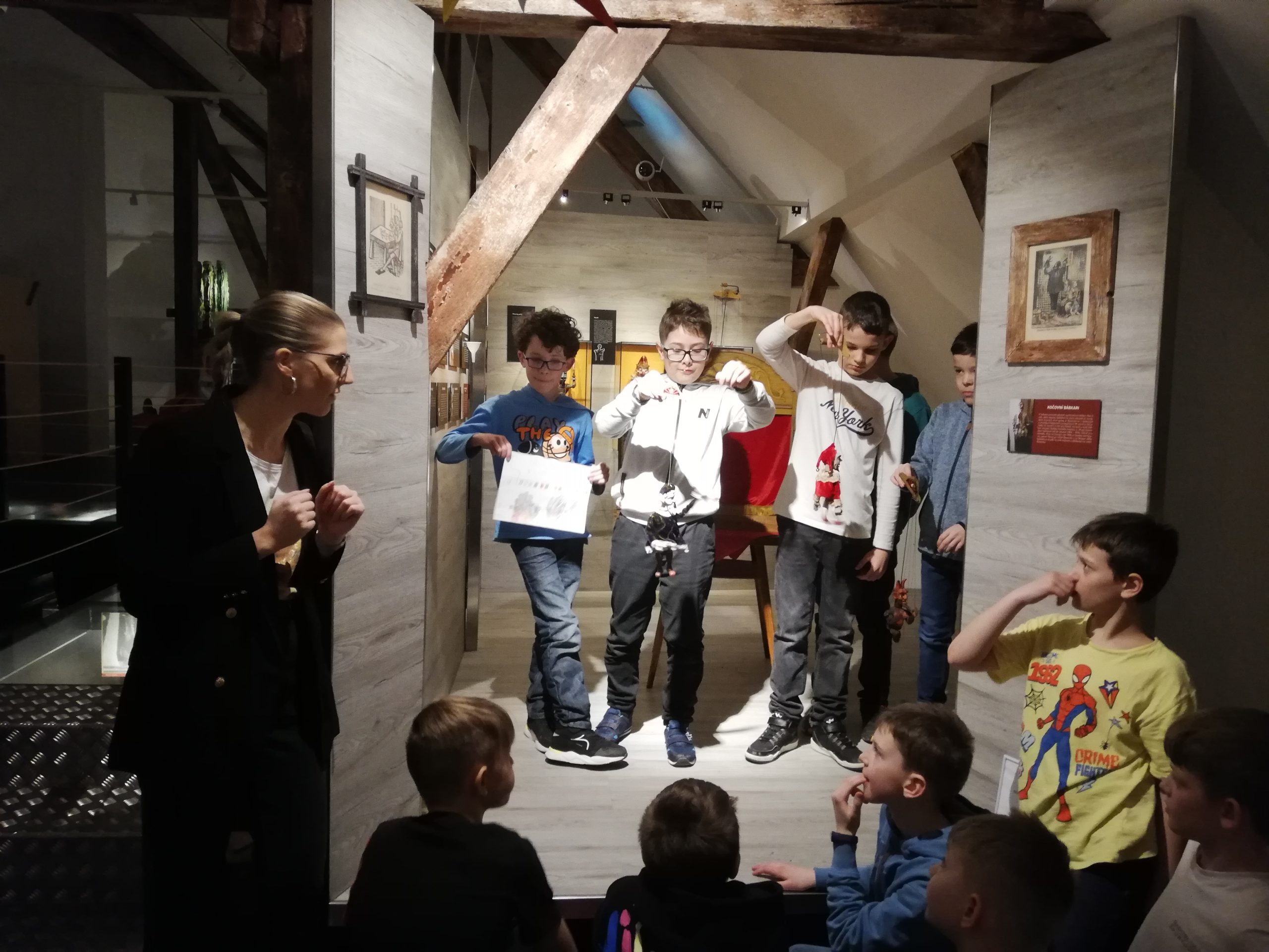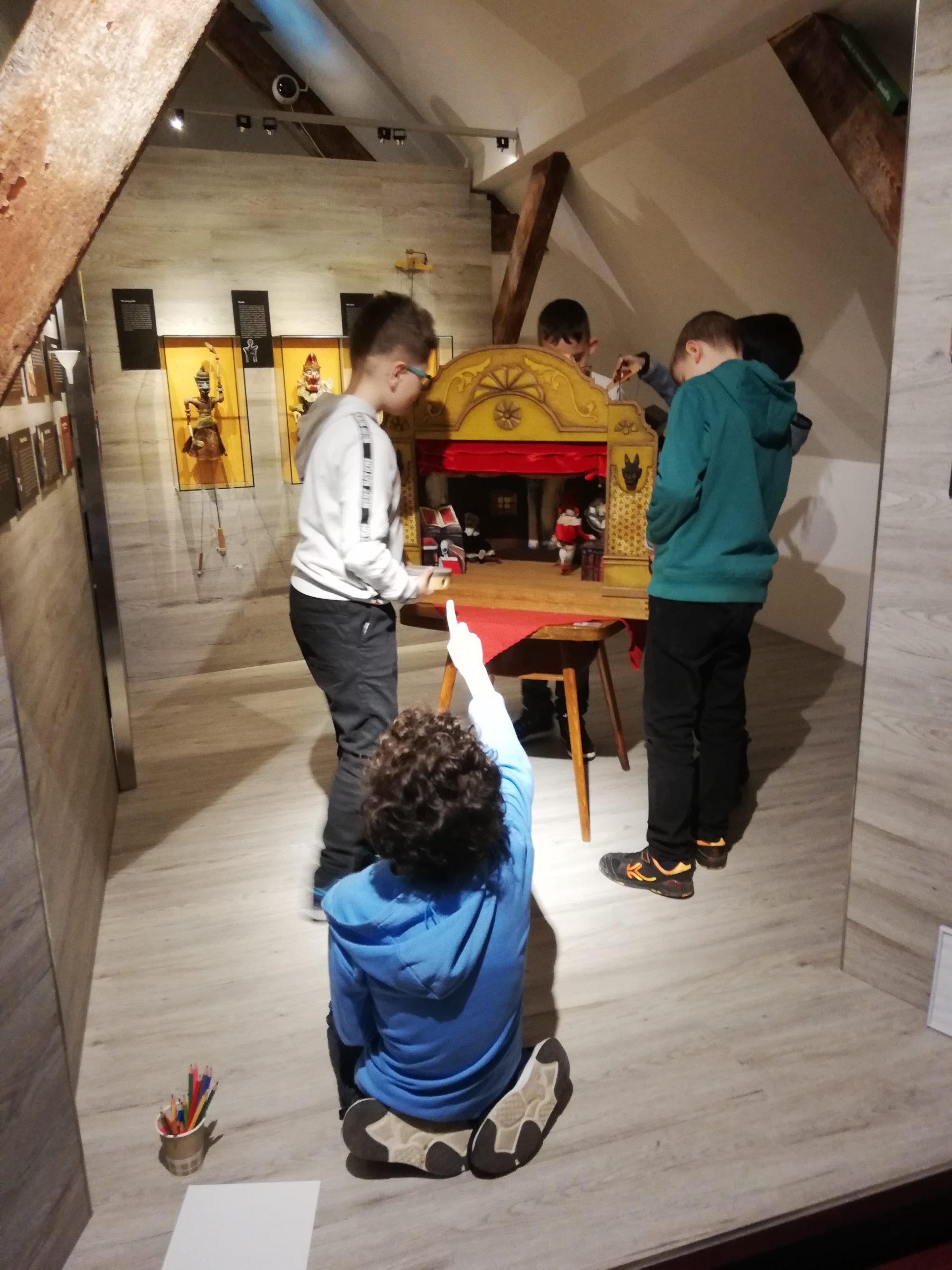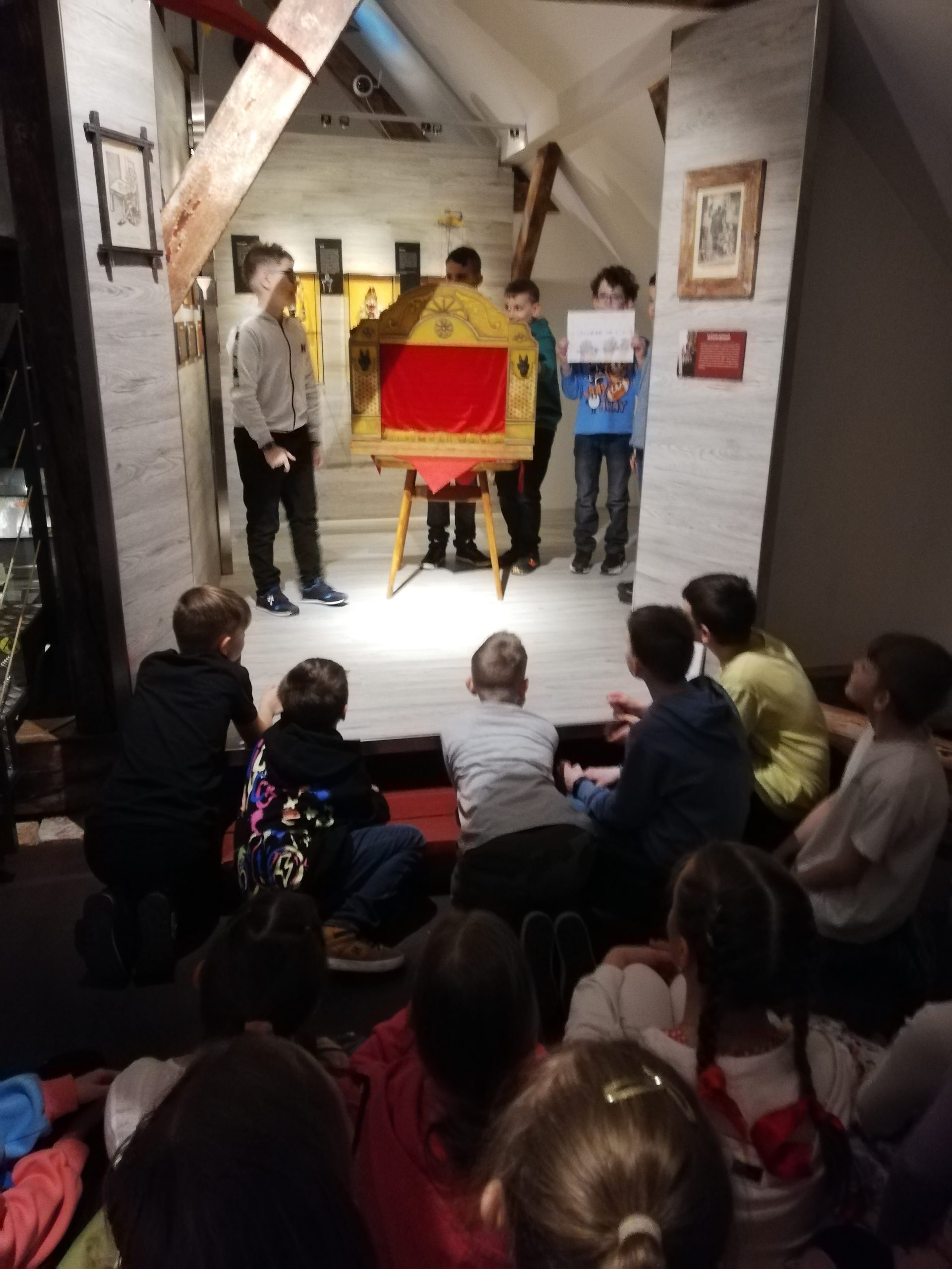 23. 3.2023 Včielky zas navštívili podkrovie Rosenfeldovho paláca, v ktorom sú rôzne bábky z predstavení Bábkového divadla Žilina. Tentokrát si mohli vyskúšať prácu režiséra, výtvarníka, hudobníka aj herca, pri tvorbe a nácviku krátkeho predstavenia. Každá skupina využila iný druh bábky, prostredia, hudobných nástrojov…….. Zážitkom bolo sledovať kreatívny pracovný ruch každej skupinky Včielok pri tvorbe. A zábavné a zaujímavé boli všetky finálne predstavenia. Škoda, že ste tam neboli :))
