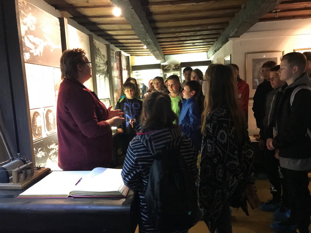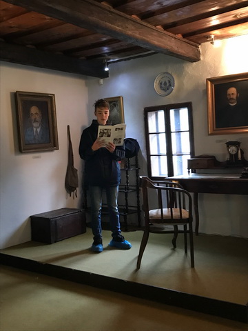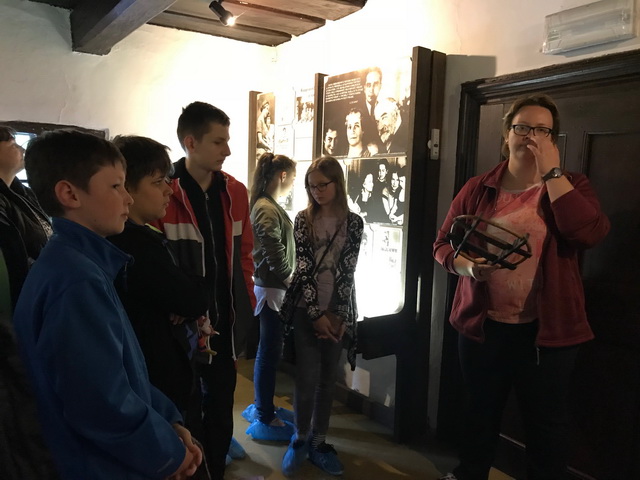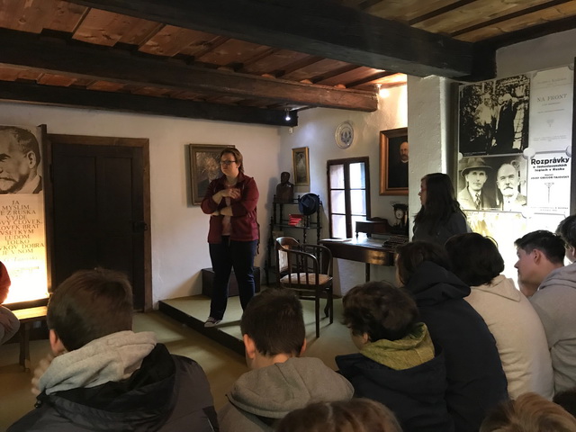 Vo štvrtok 26. apríla 2018 sme sa spolu s našimi šiestakmi a deviatakmi vybrali po stopách J. G. Tajovského do jeho rodného Tajova. V dome starého otca Štefana Greška, u ktorého prežil celé svoje detstvo, sa zoznámili nielen so životom a dielom tohto realistického spisovateľa, ale aj s tvorbou Tajovského manželky, spisovateľky Hany Gregorovej, a s históriou obce v súvislosti s Jozefom Murgašom, katolíckym kňazom, maliarom a vynálezcom, priekopníkom bezdrôtovej telegrafie. A, okrem iného, ruku na srdce: koho by nezaujímalo, z čoho mal budúci pán učiteľ Tajovský na vysvedčení v učiteľskom ústave trojky a štvorky? Bonusom však bol aj umelecký zážitok z autorových Prvých hodiniek v podaní nášho osvedčeného recitátora Jakuba Grofa z IX.NA .