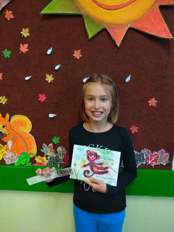 V našej triede žabiek III.ŽB sa veru nájdu veľmi šikovné deti. Je ňou aj naša Julia Samec, ktorá už v prvej triede skúsila, aké je to napísať knihu. Samozrejme jej trochu pomohli aj dospelí. Vymyslela príbeh o zvedavej opičke. Príbeh si môžete prečítať v slovenskom a dokonca aj v anglickom jazyku. Našej spisovateľke držíme palce, aby sa jej aj naďalej darilo. Knihu si môžete objednať cez web v kníhkupectve Martinus alebo priamo kúpiť v kamennom obchode. Tak hor sa čítať!